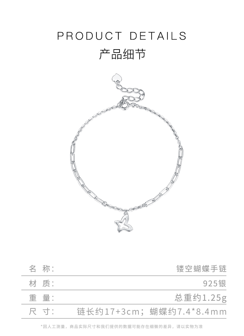 ALLOVE S925银镂空蝴蝶手链,时尚百搭