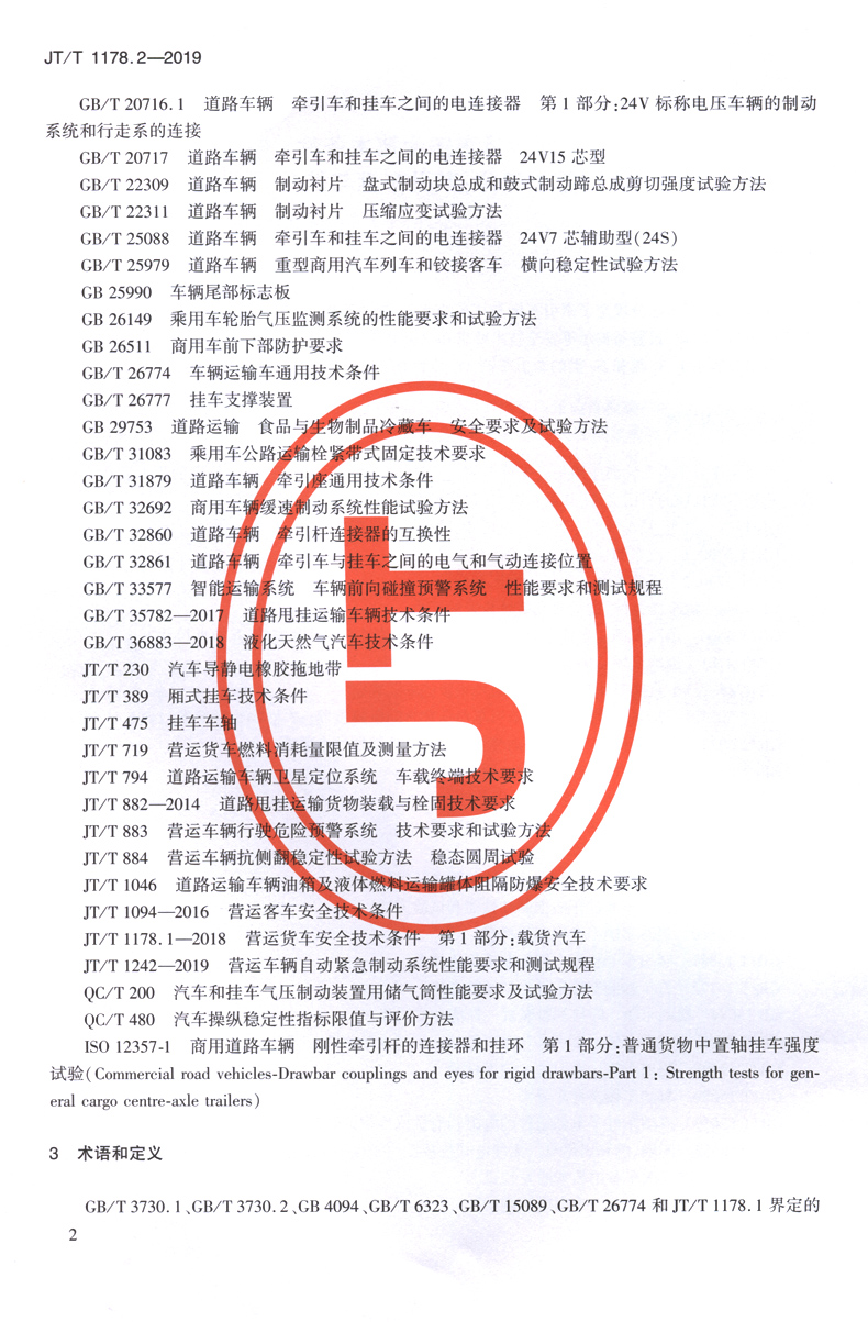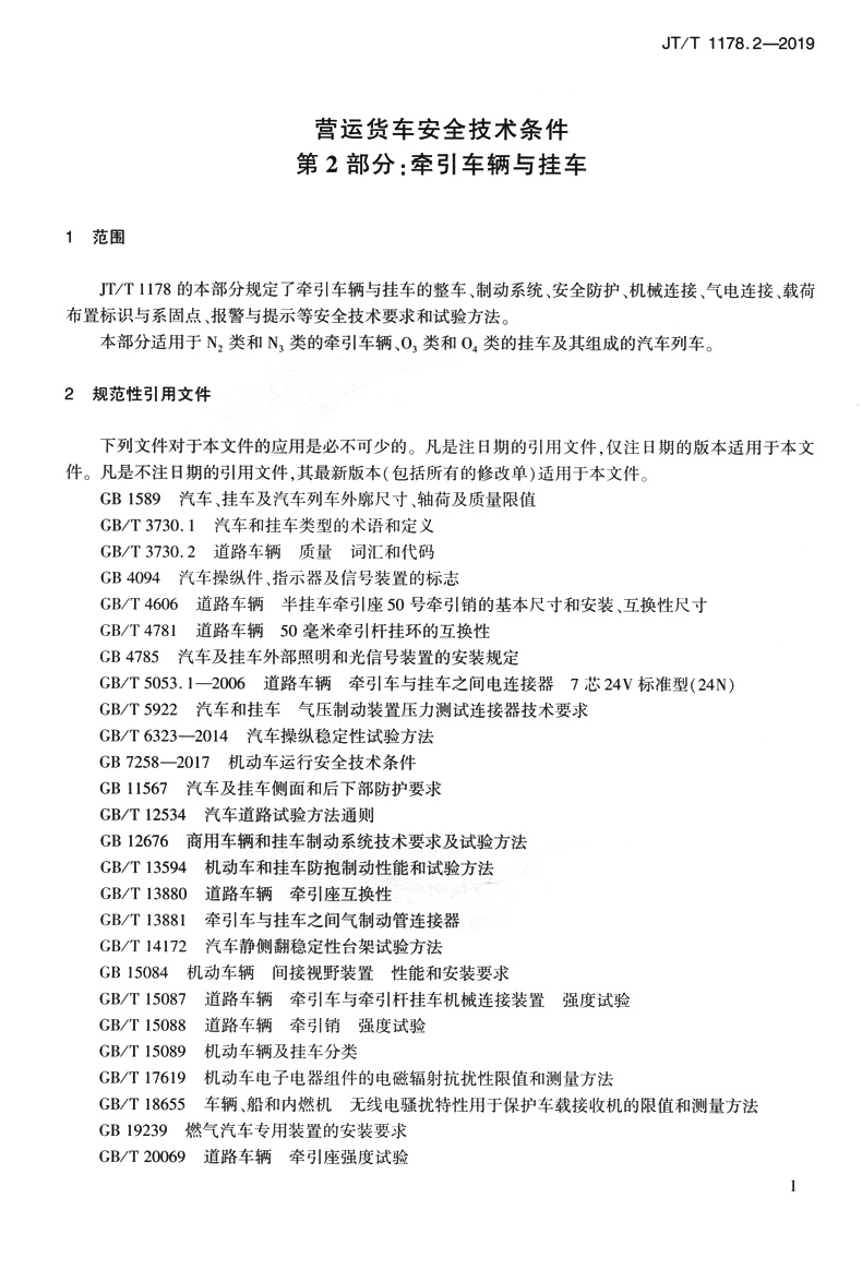 | 营运货车安全技术条件 第2部分:牵引车辆与挂车(JT/T1178.2—2019) | ||