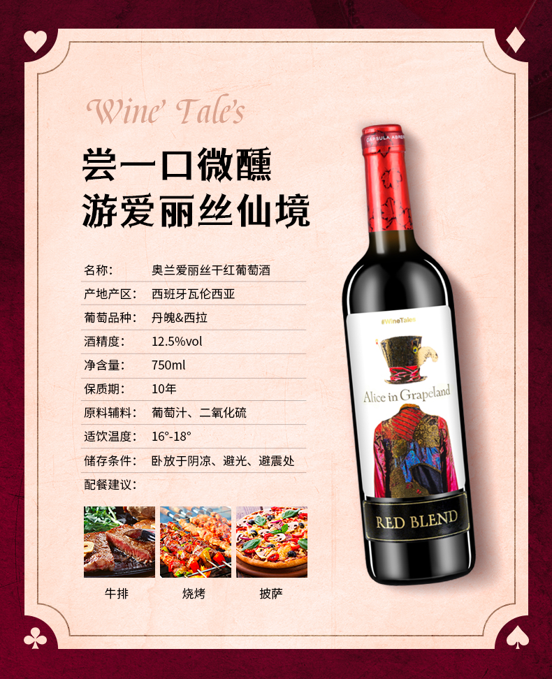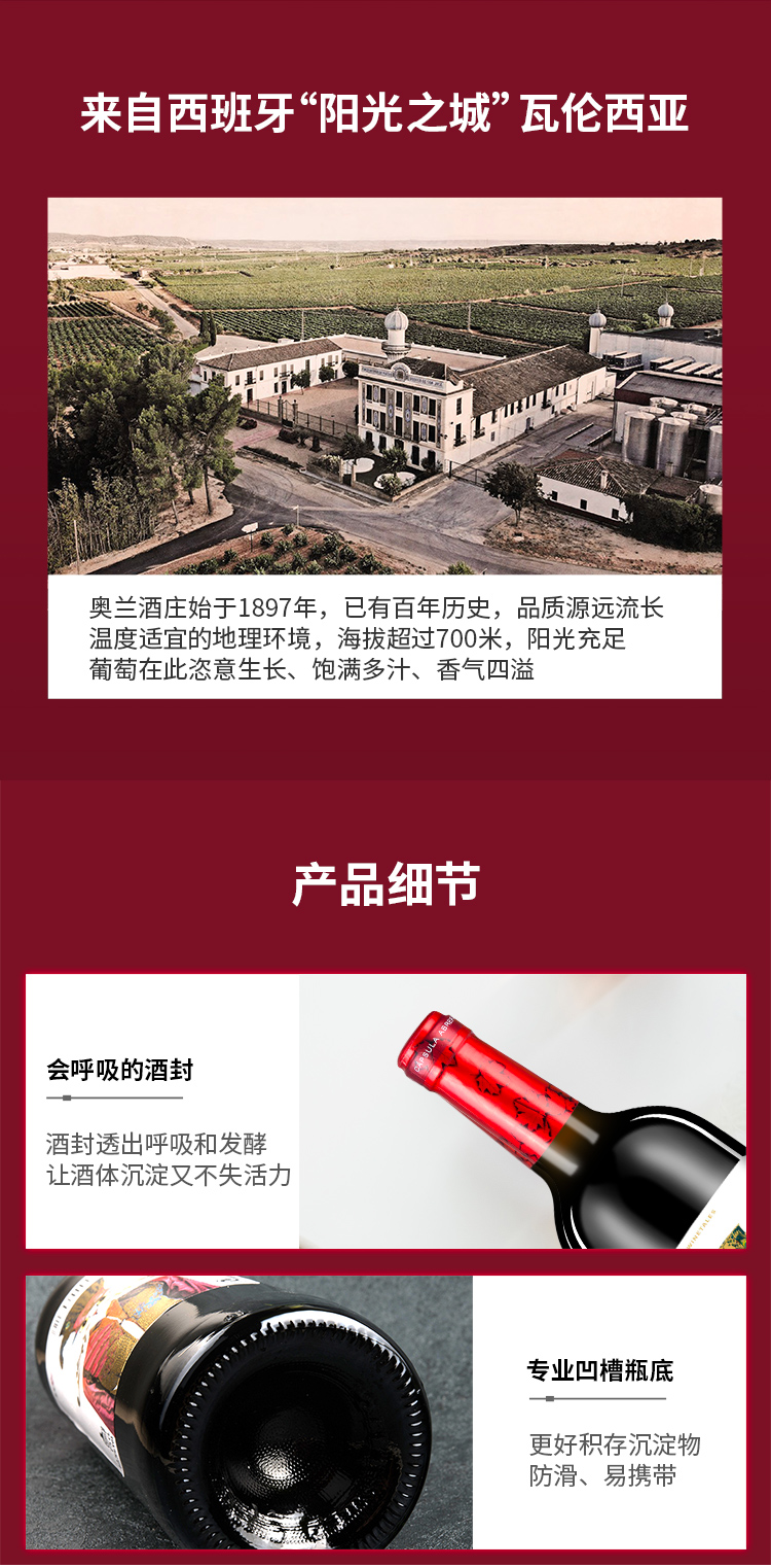 【官方正品】奥兰爱丽丝干红葡萄酒 12.5度750ml*6 西班牙原瓶原装进口
