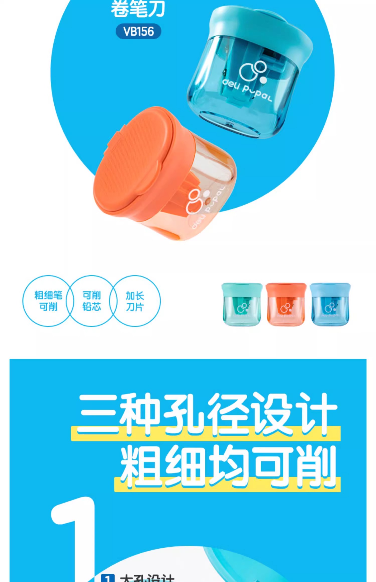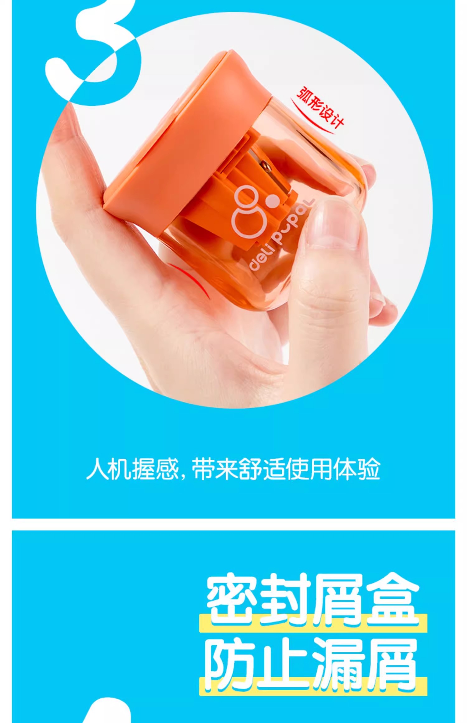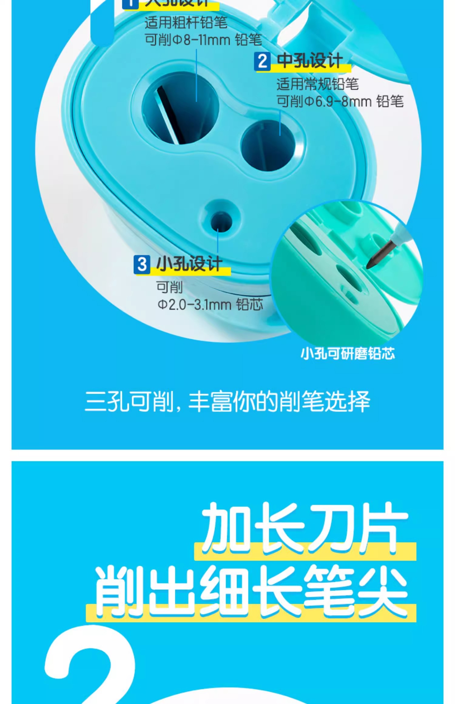 得力系列【三种孔径设计!粗细均可削】得力卷笔刀三孔转笔刀小学生削笔刀小学生专用儿童加粗杆削笔器,大容量集屑盒 可视化设计。ry