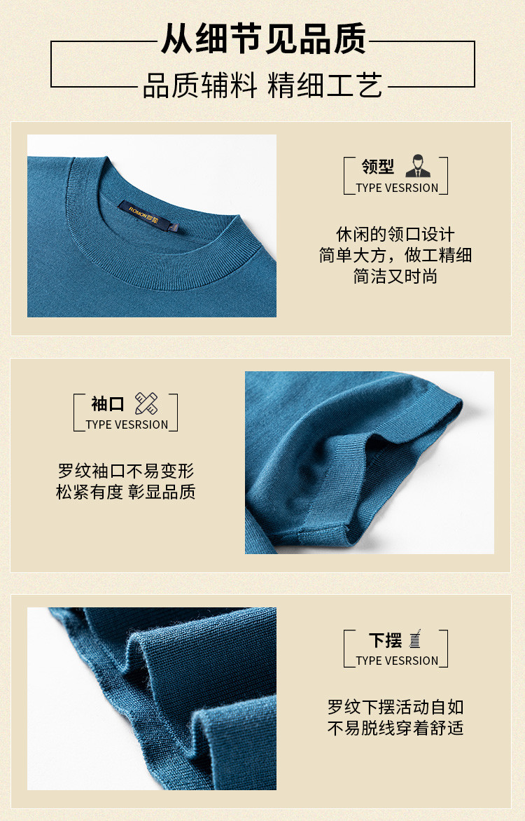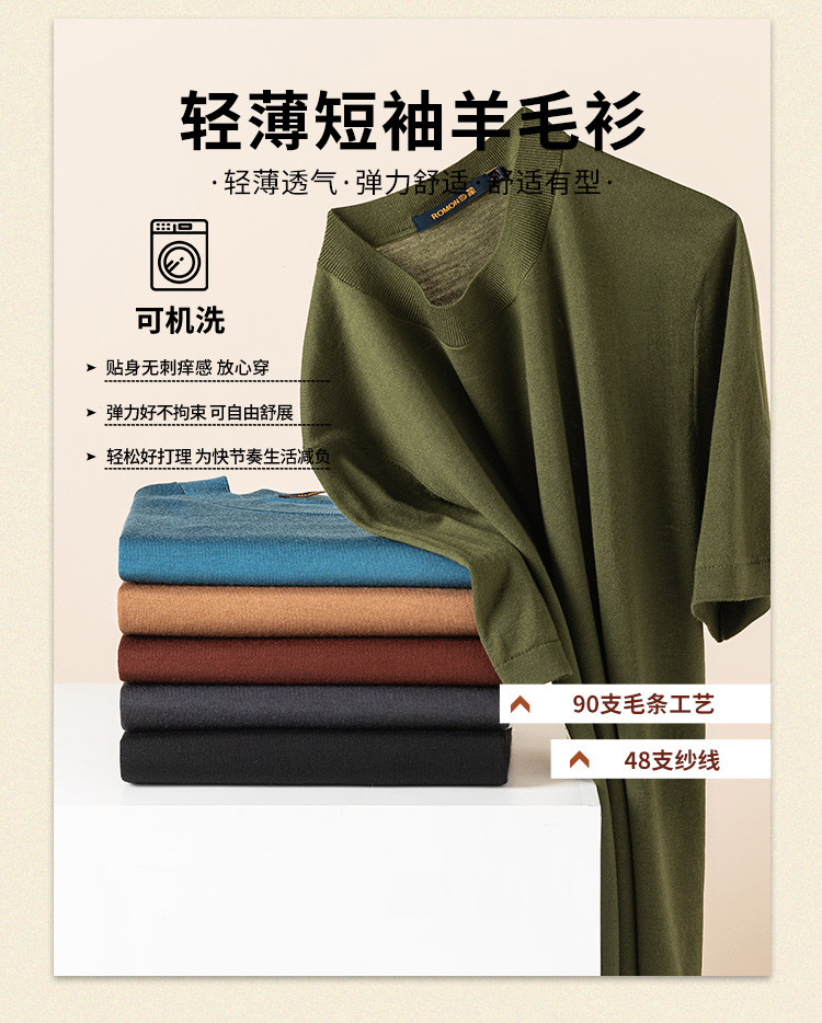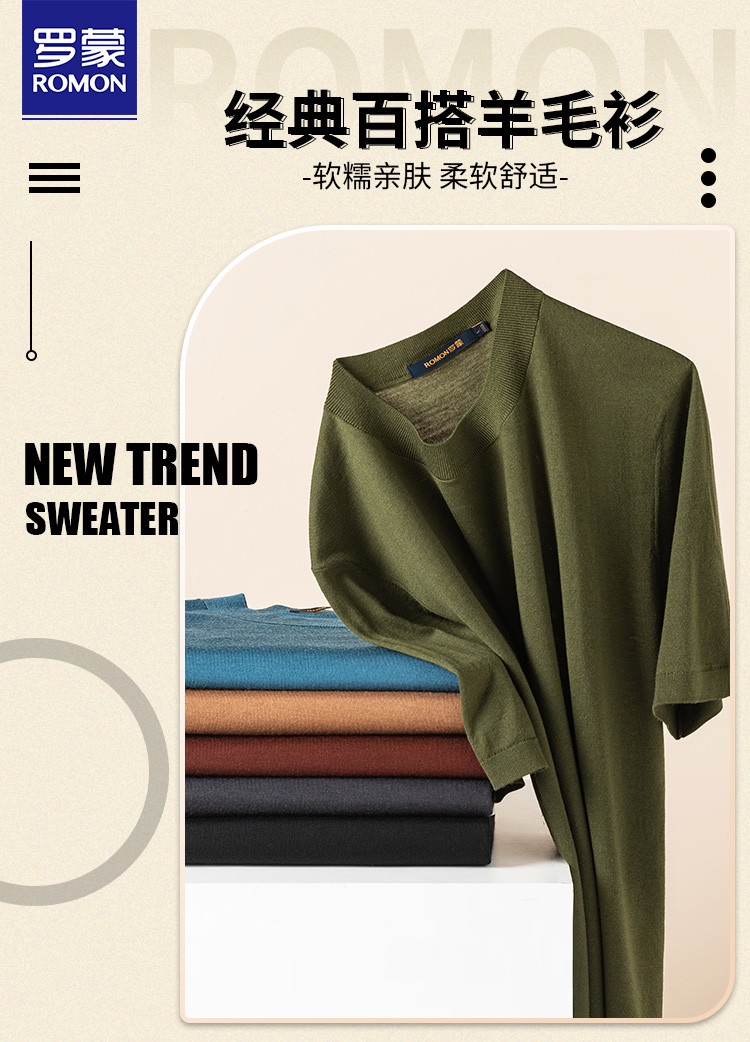 【可机洗100精纺羊毛】罗蒙羊毛衫男薄款保暖半高领毛衣男t恤