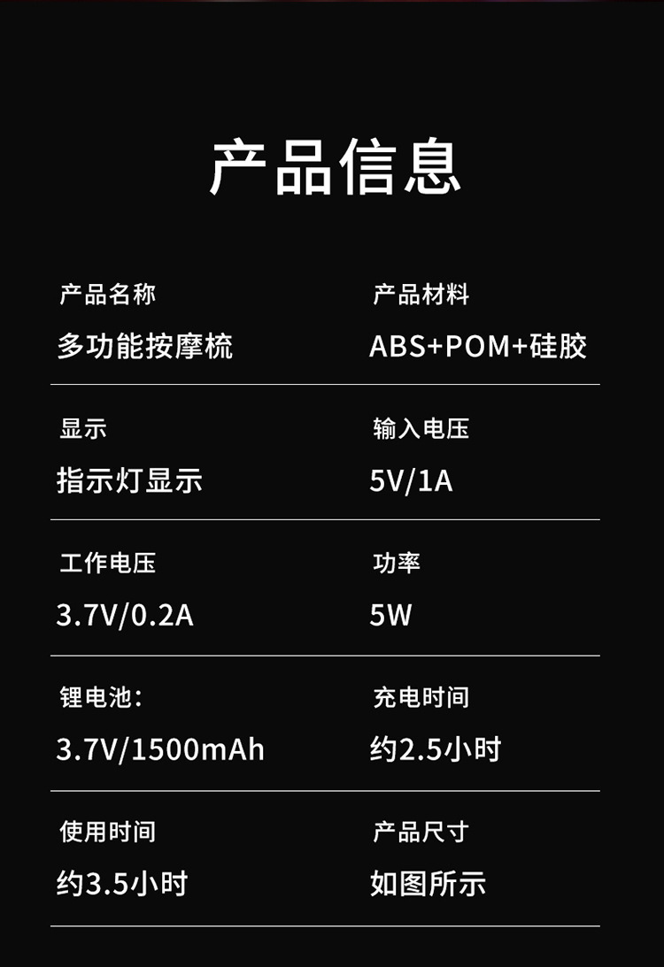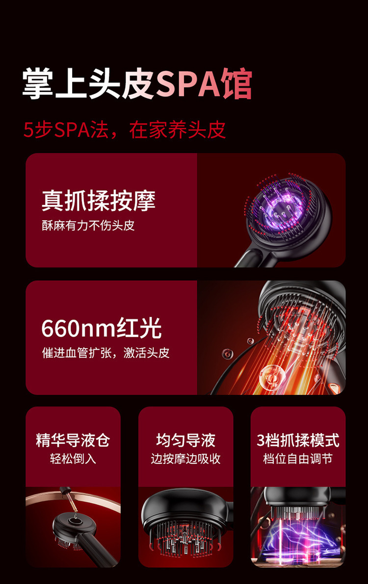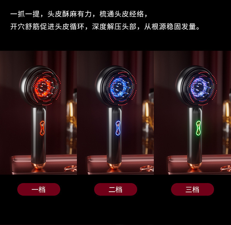 按摩器微电流电动按摩梳上药头部红光电动导液梳头部按摩器