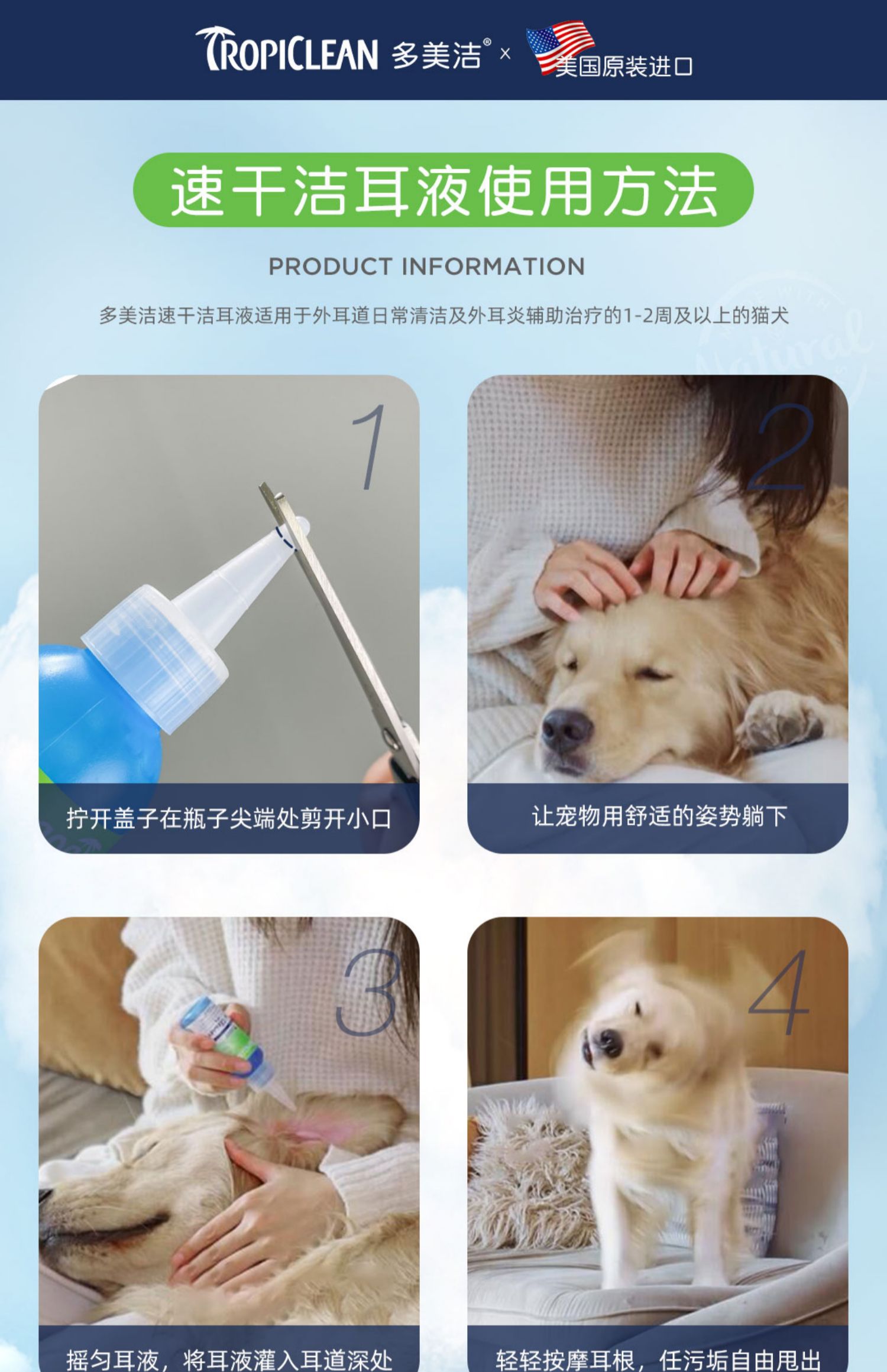 多美洁猫咪洗耳液宠物耳螨狗用洁滴耳液耳朵清洁耳螨猫用耳漂狗狗