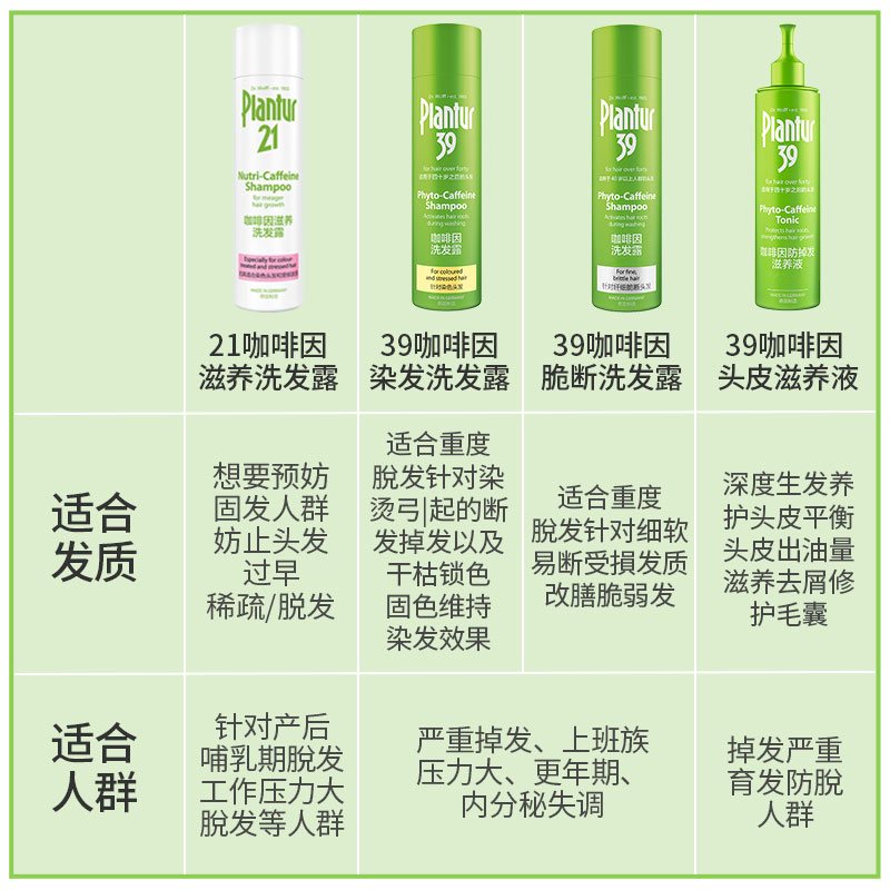 整个测试证明,添加了咖啡因活性成分的Plantur洗发露,具有特别好的防掉发效果~