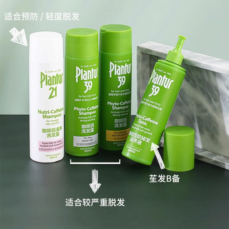 商品名称:德国朴兰图39咖啡因洗发水250ml+头皮滋养液200ml