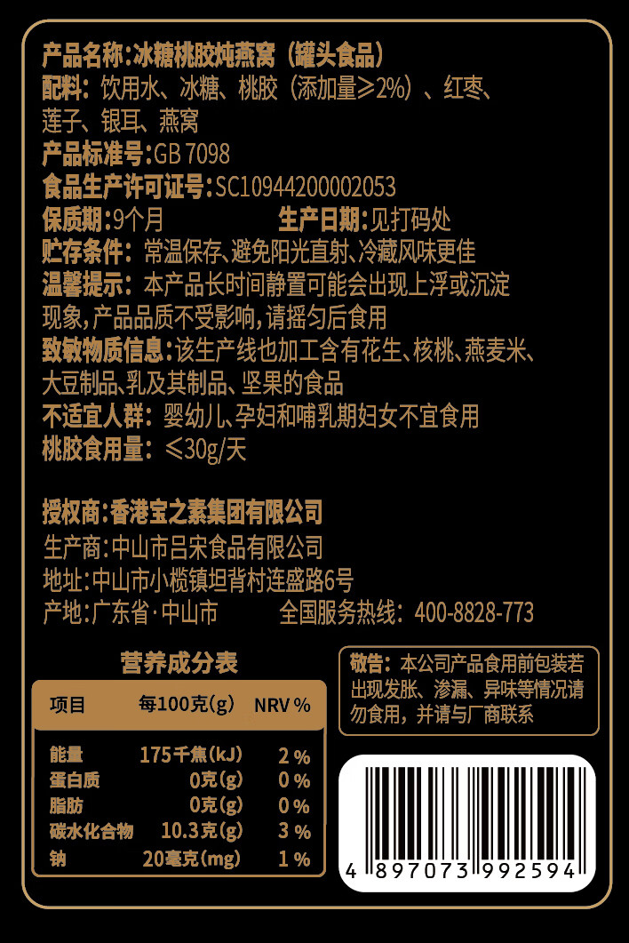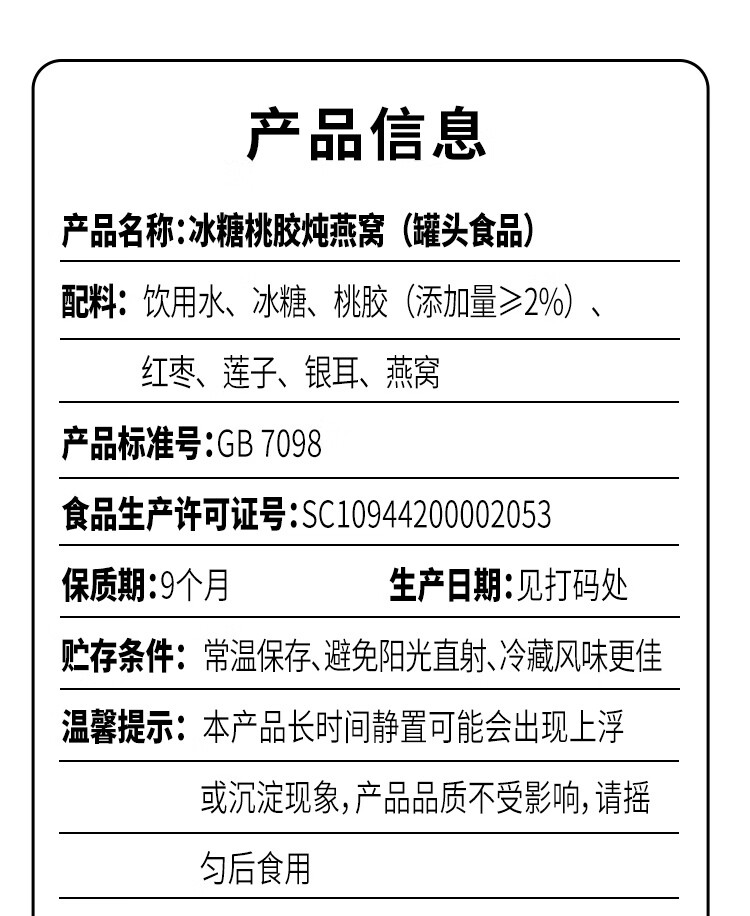 宝之素冰糖桃胶炖燕窝195g