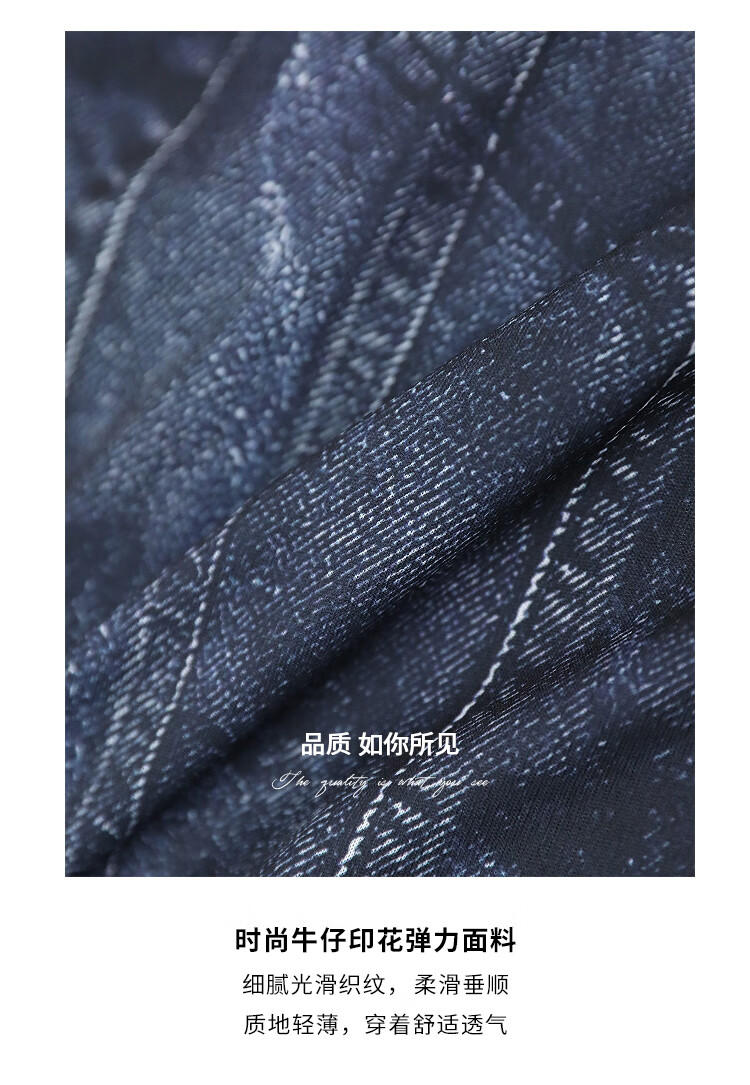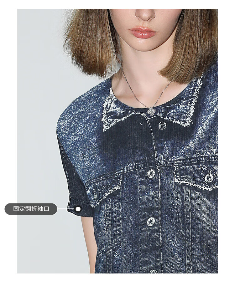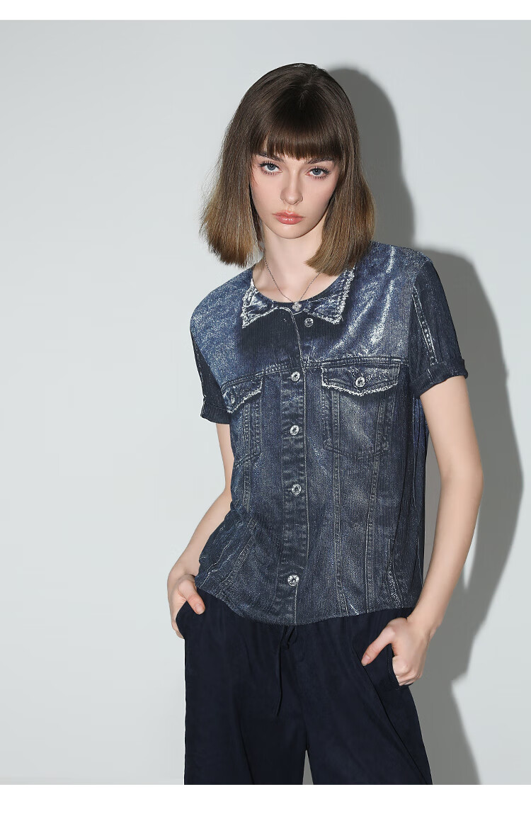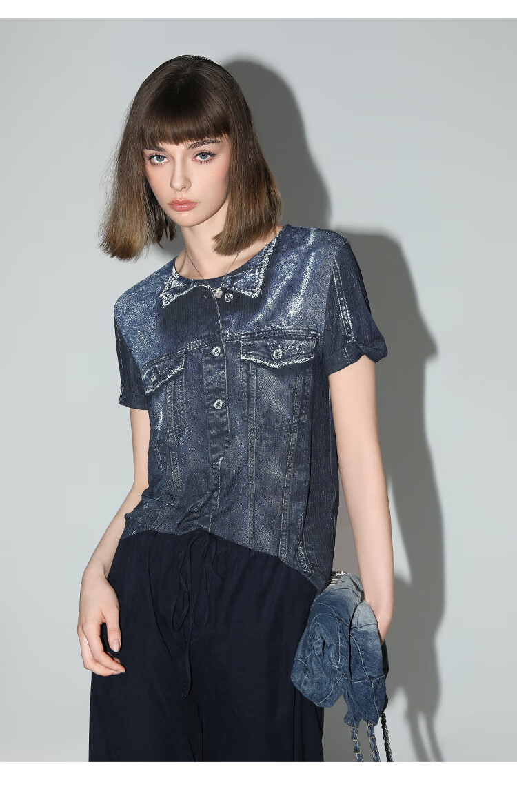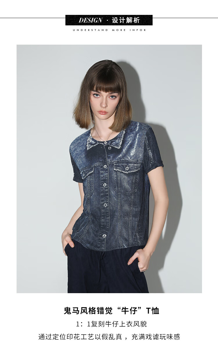 COCOBELLA设计师款手绘牛仔印花短袖针织T恤女休闲上衣TS919