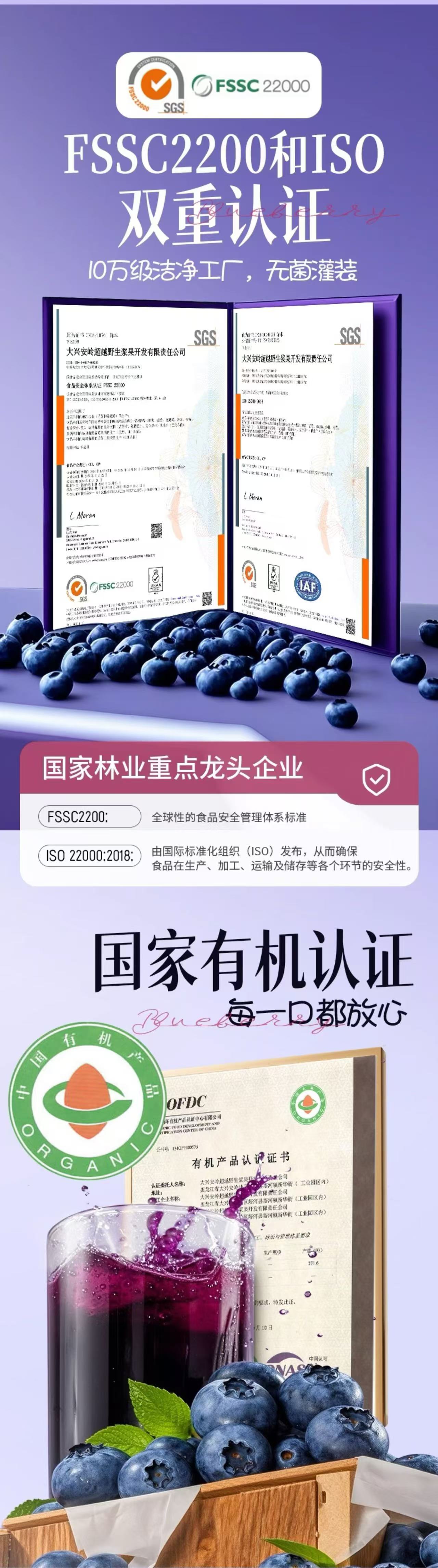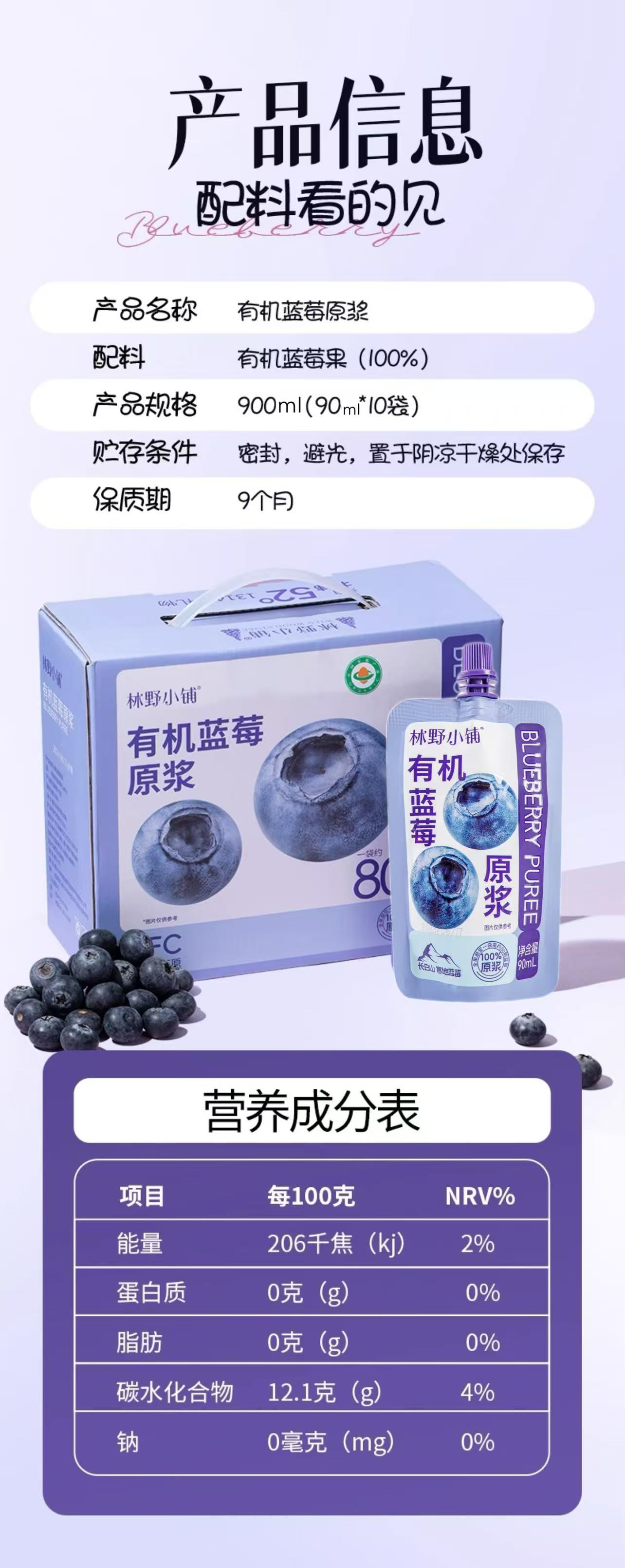 【专享】林野小铺 NFC100%有机蓝莓原浆90ml