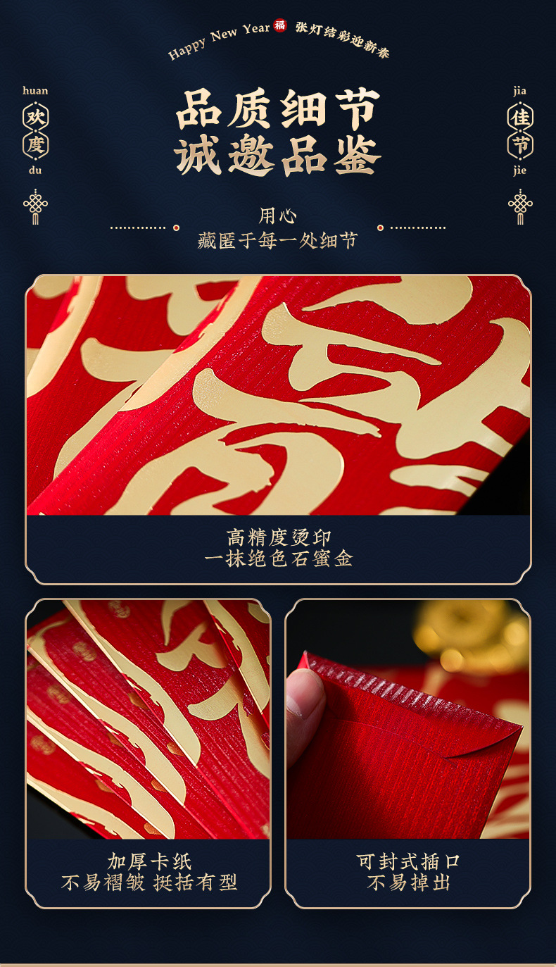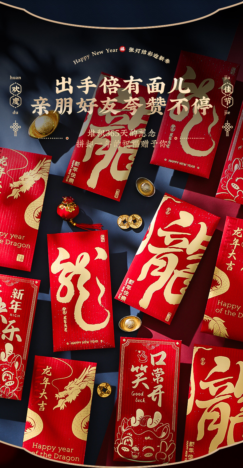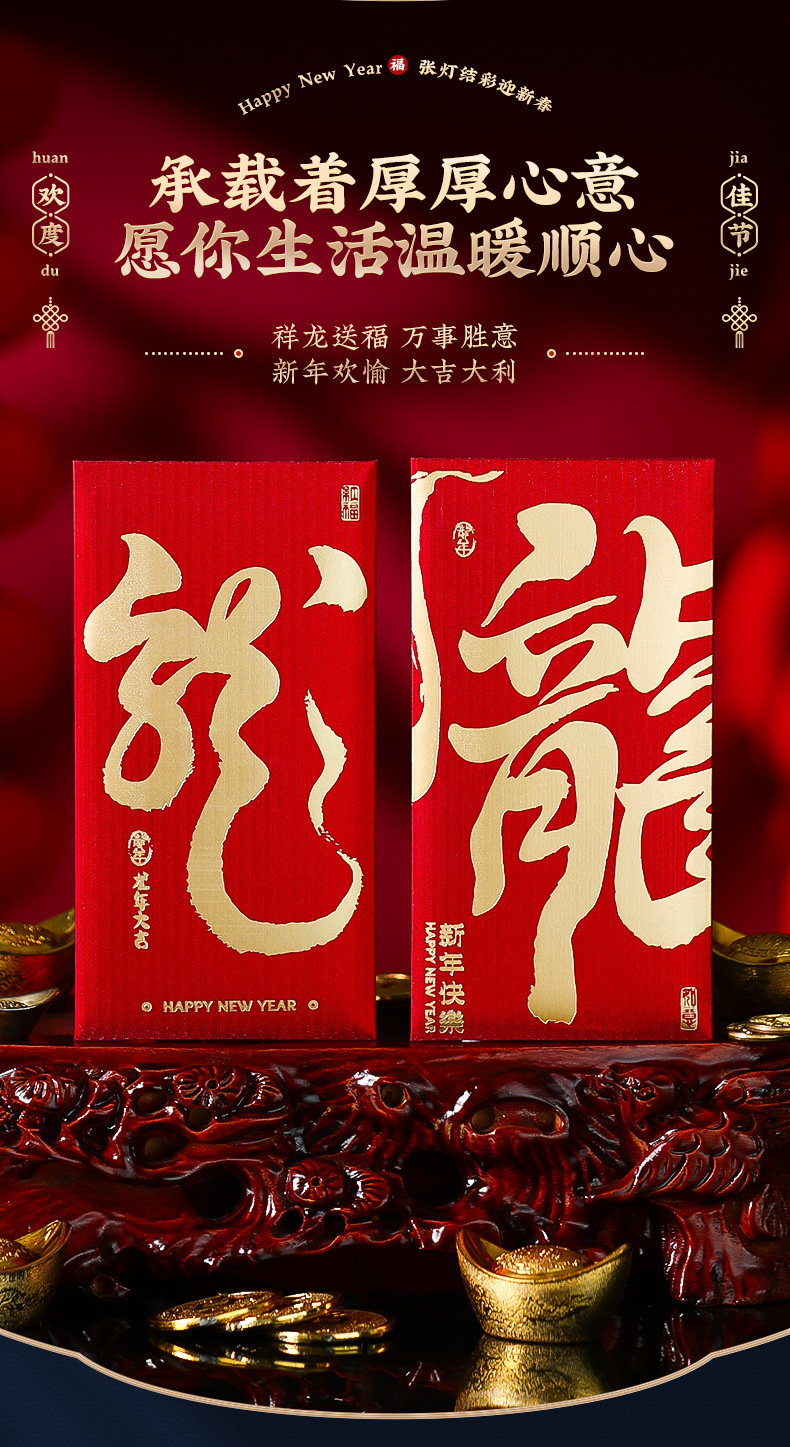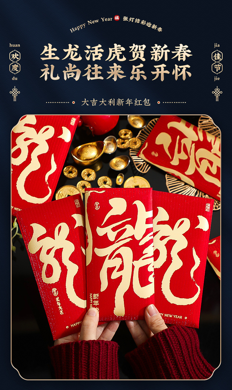 「5.9元包邮!6个装」2024新款新年过年红包袋压岁钱包书法个性家居饰品龙年春节通用利是封