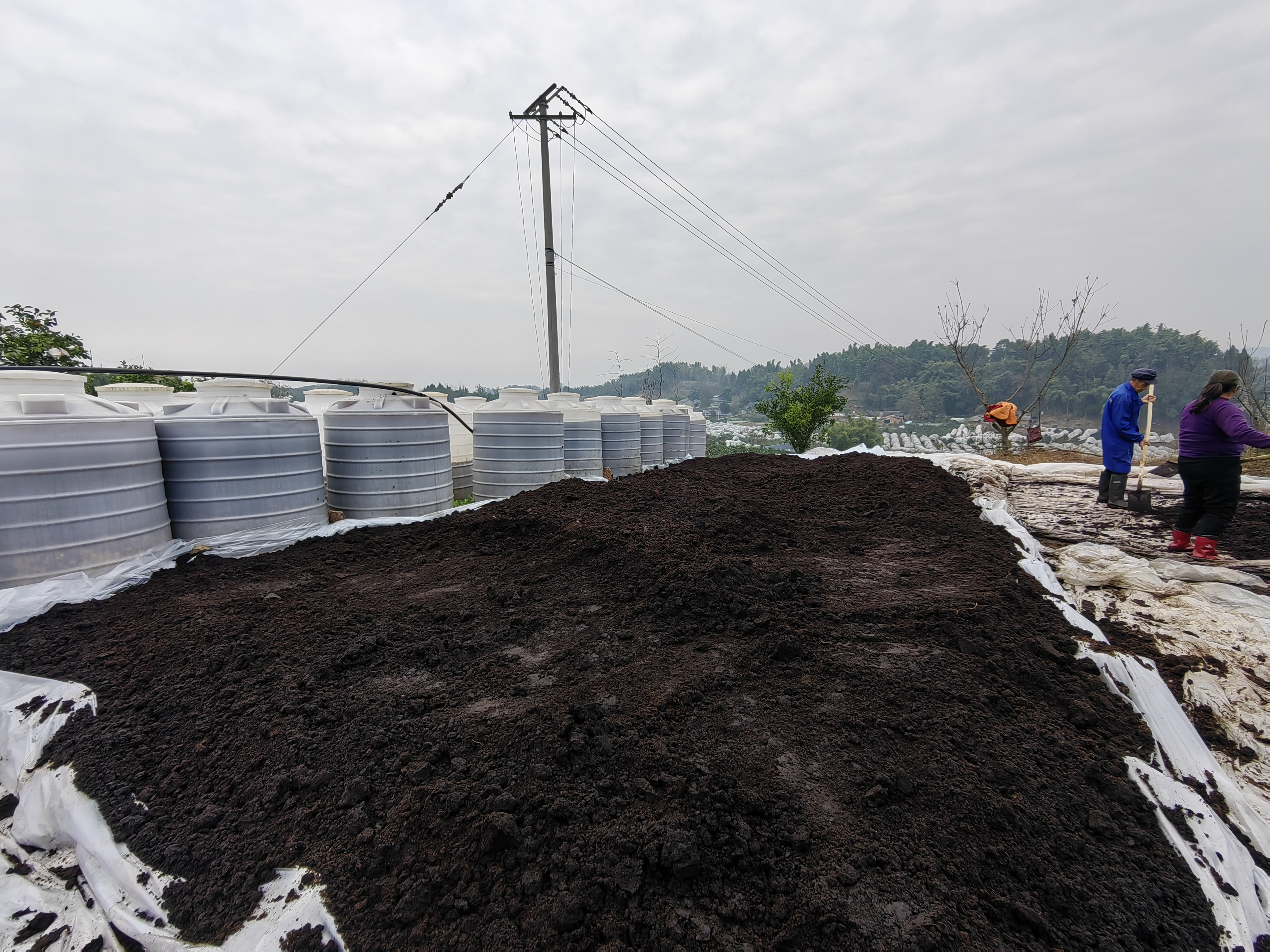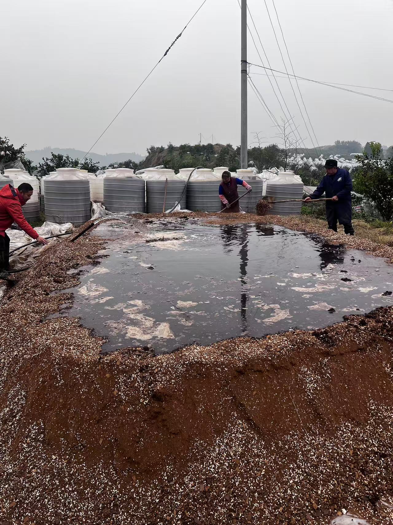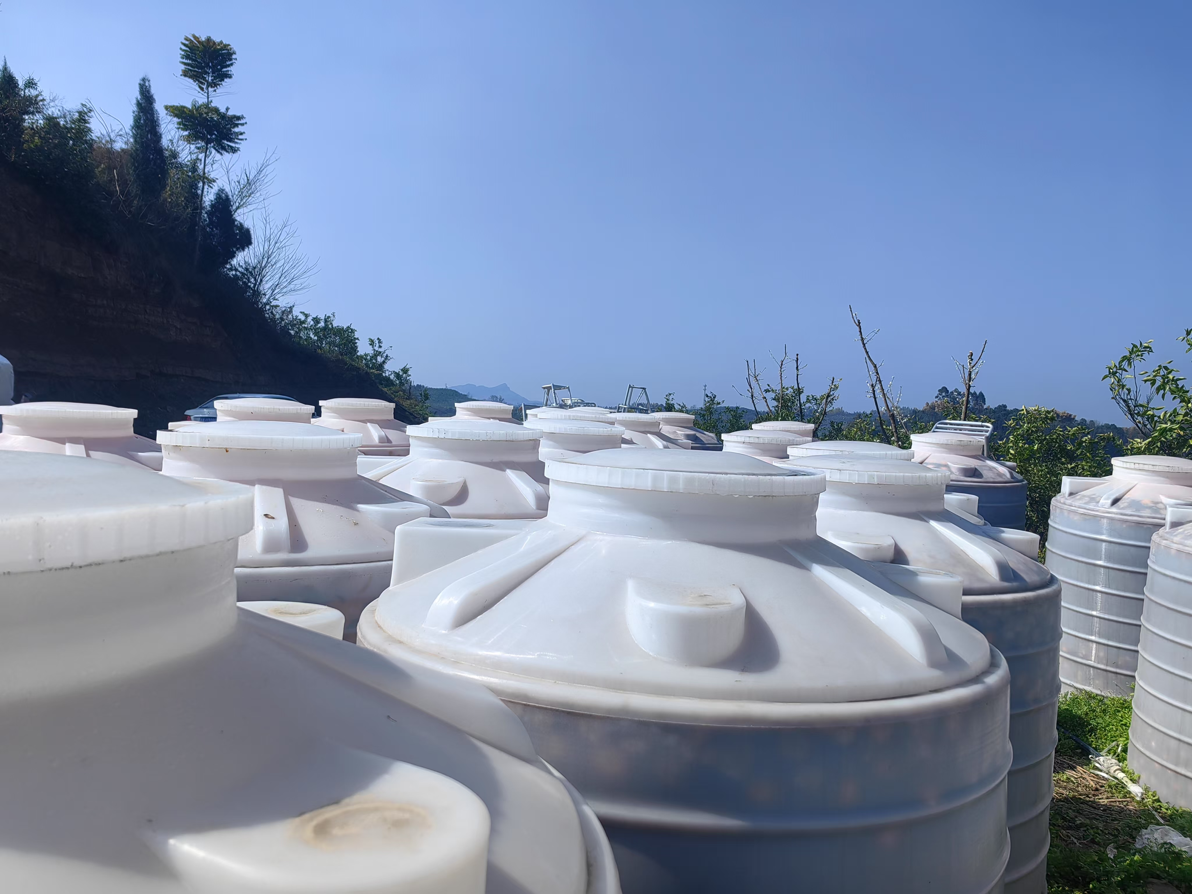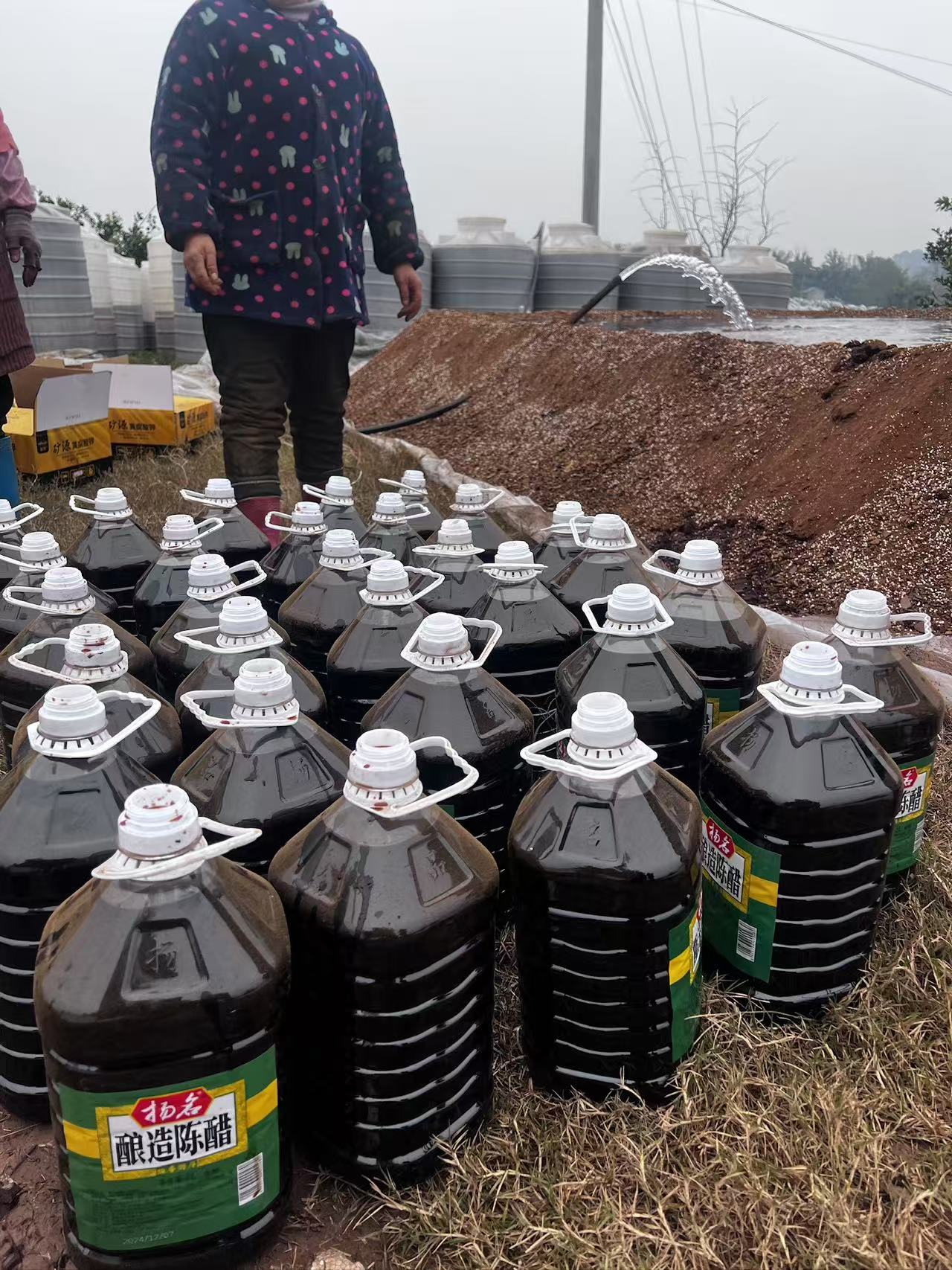 在果园,就能看到很多的大桶,
