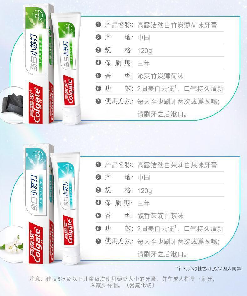 「数款可选」高露洁劲白小苏打竹炭薄荷亮白清新口气清洁茉莉留兰竹炭牙膏口腔护理