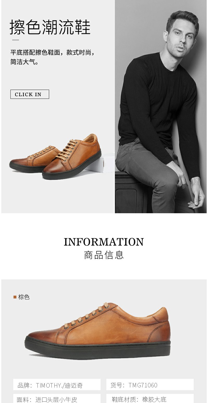 【正品】迪迈奇2021新款休闲皮鞋头层牛皮透气男鞋棕色青年运动户外鞋板鞋