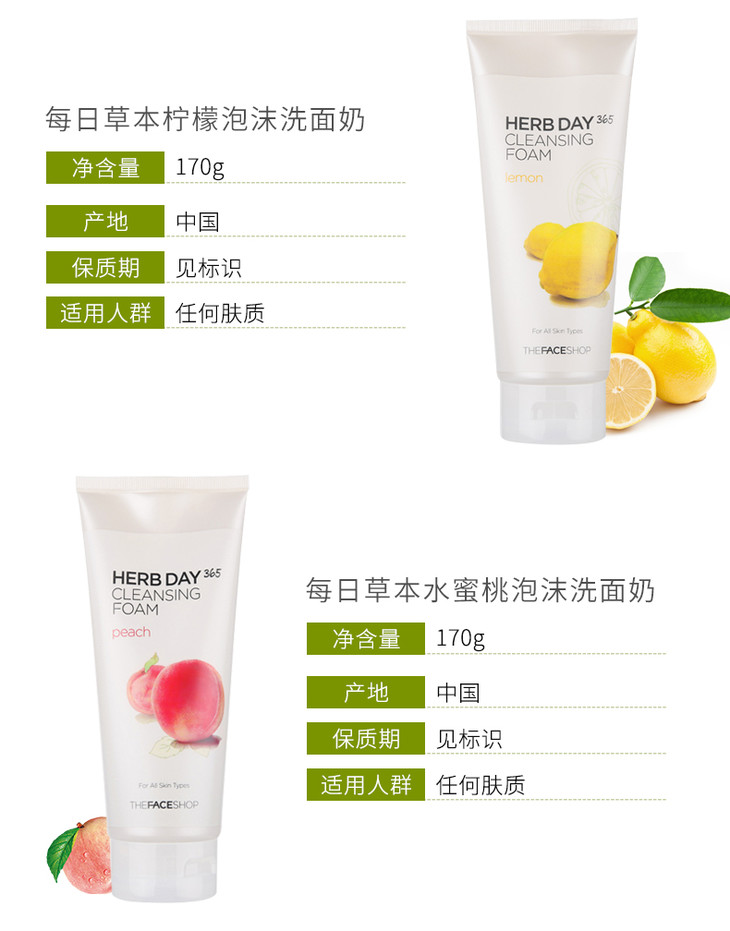 菲诗小铺每日草本柠檬泡沫洁面乳170ml