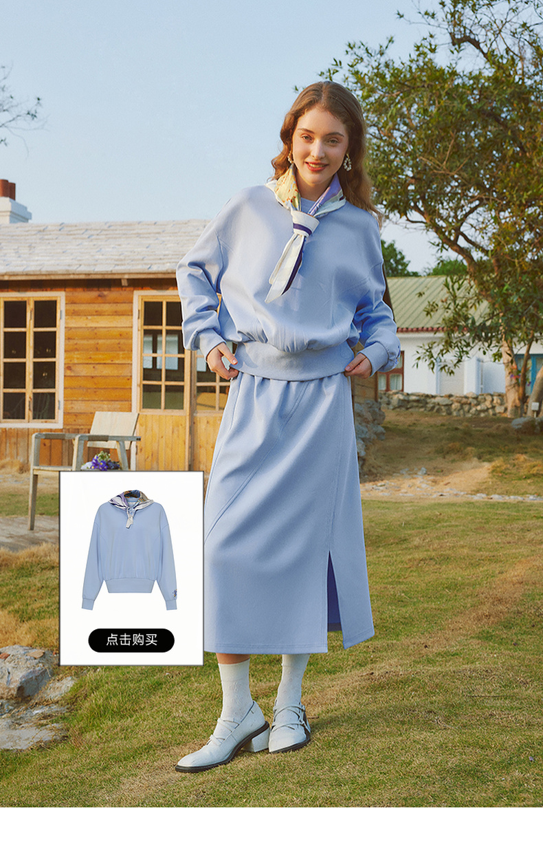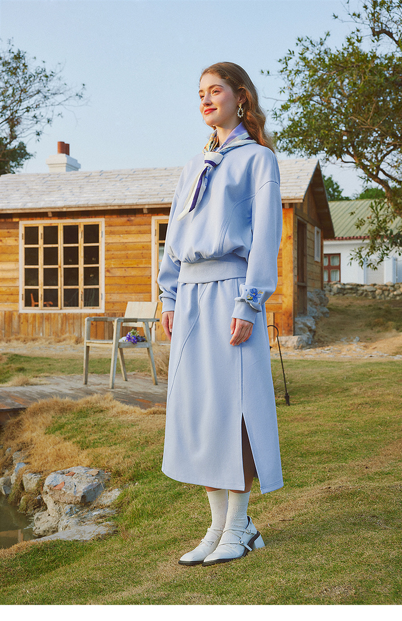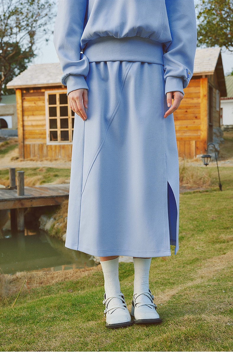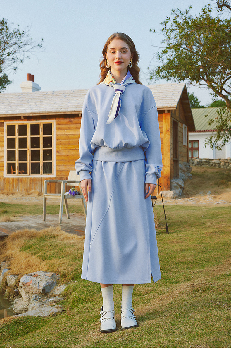 两三事漫想天空2024春季新款简约绣花口袋开叉高腰半身裙长裙