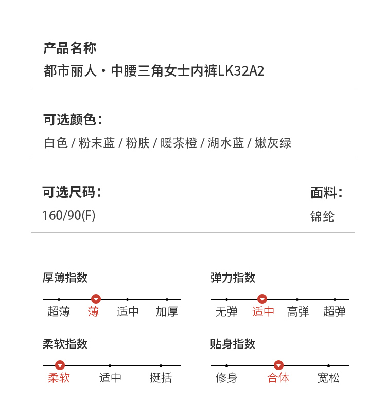 都市丽人健康系列锦泳三角裤女士内裤中腰三角裤LK32A2