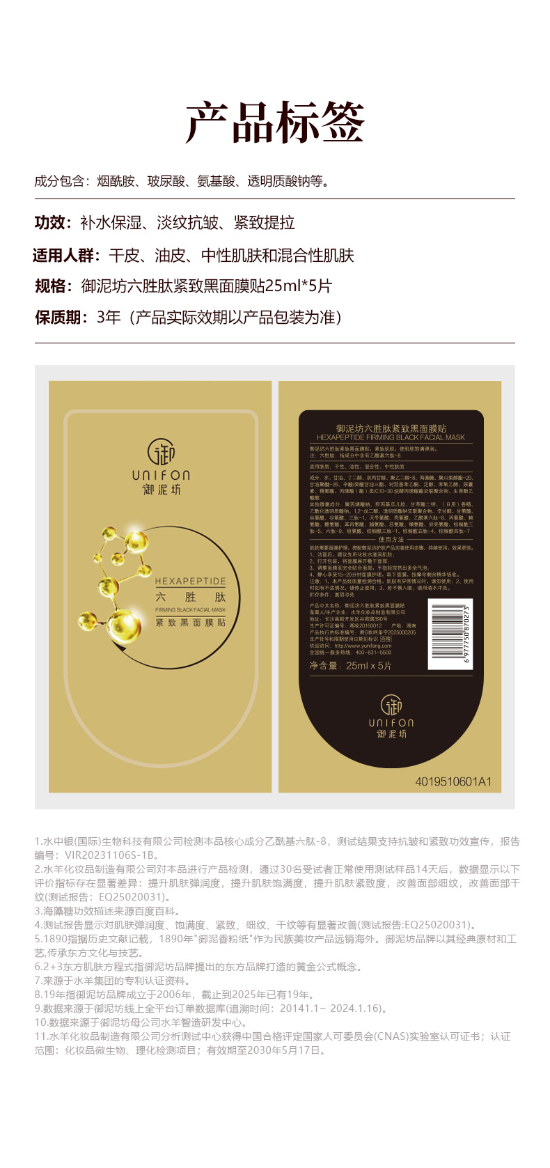 御泥坊六胜肽紧致面膜贴5片