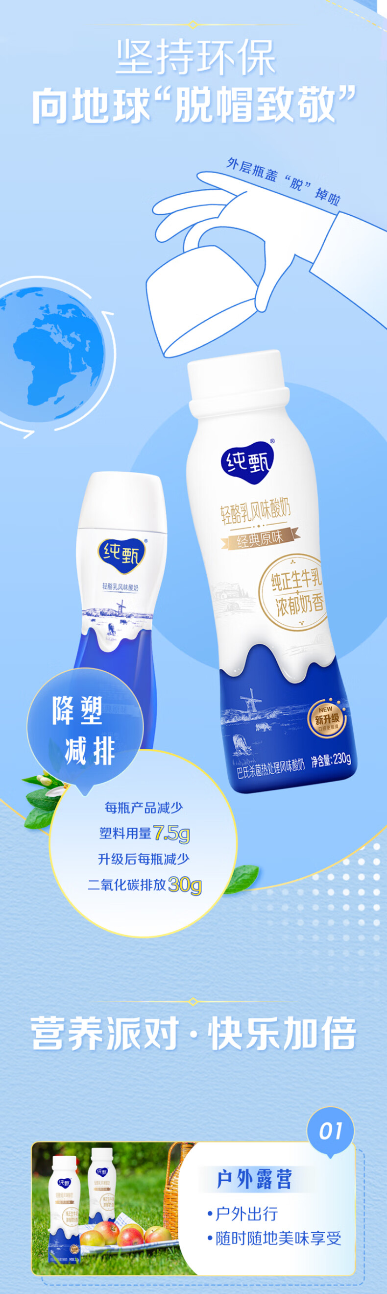 纯甄轻酪乳原味风味酸奶PET瓶230g*10瓶(升级版)
