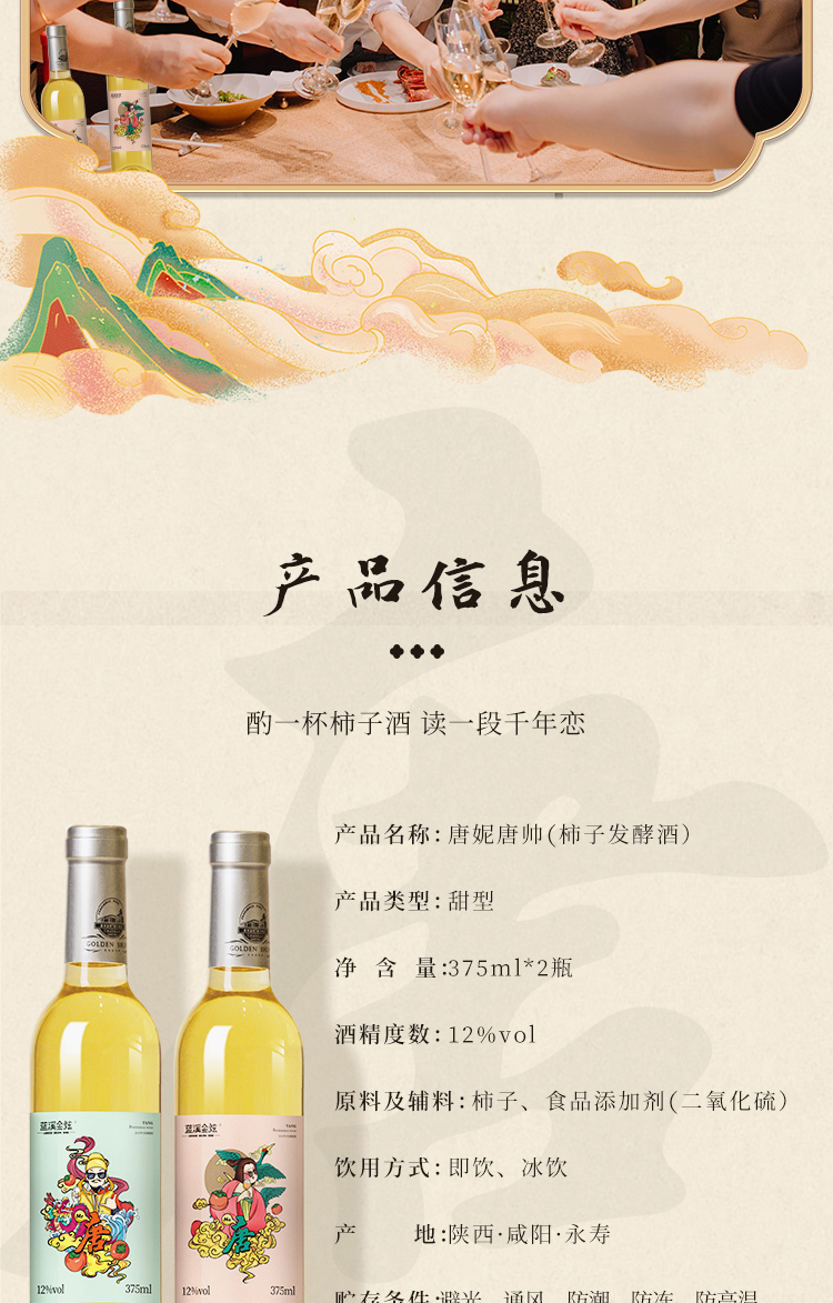 唐妮唐帅 低度酒微醺果酒柿子酒礼盒12度 375ml*2礼盒装