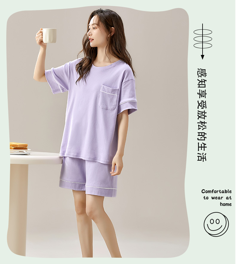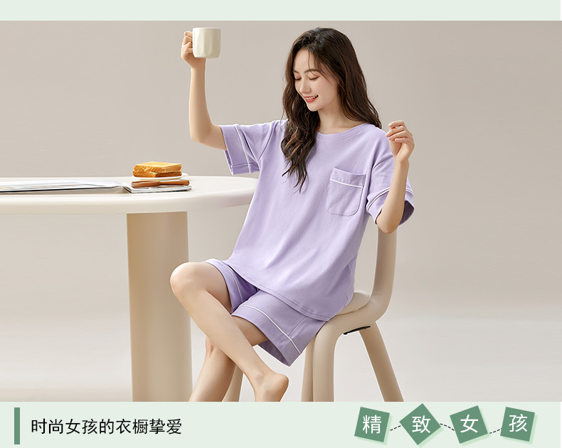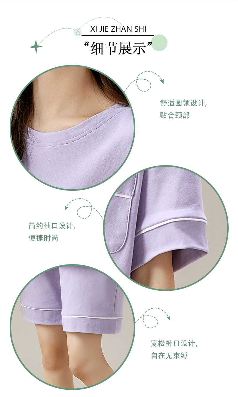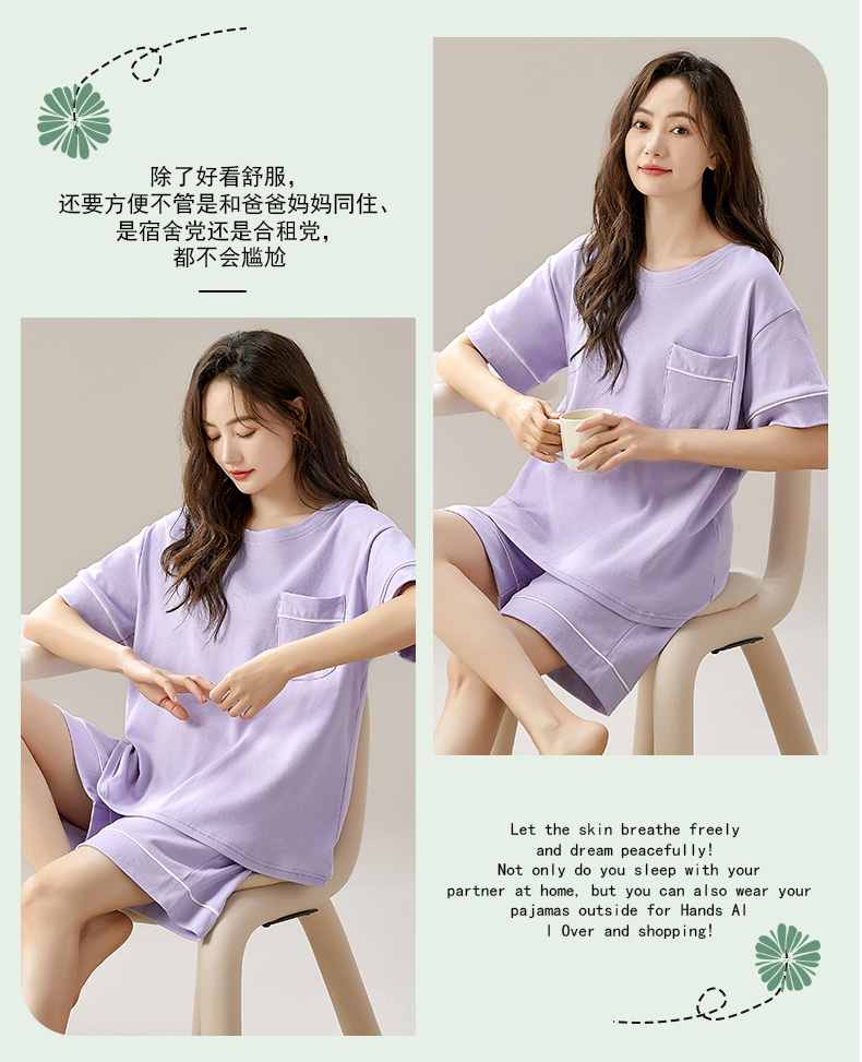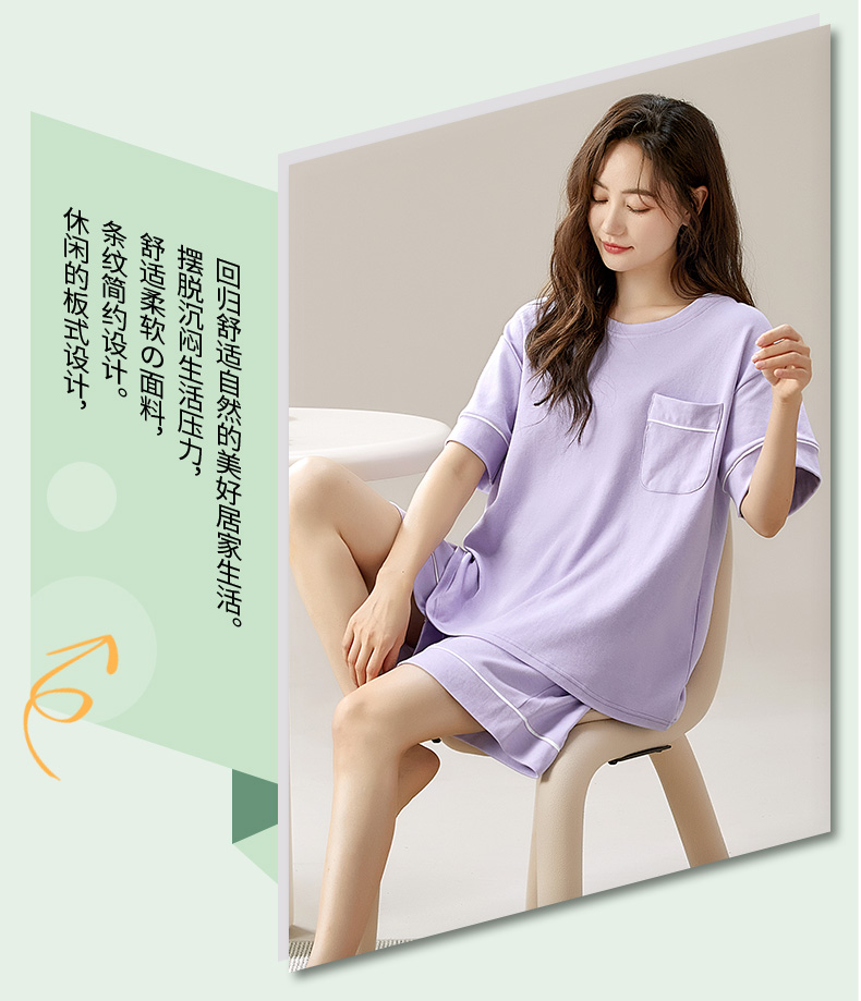 自然醒青梨家居服睡衣女款夏季100纯棉短袖短裤夏天家居服女士夏款套装可外穿QH