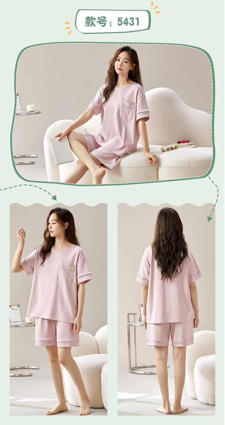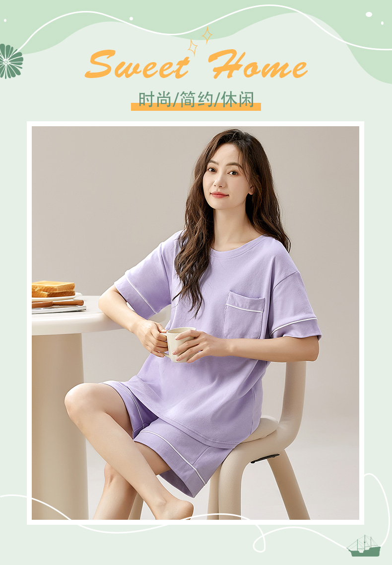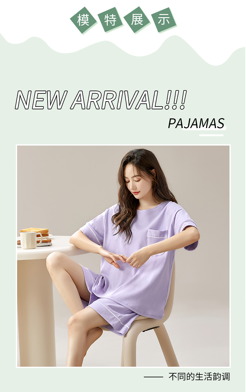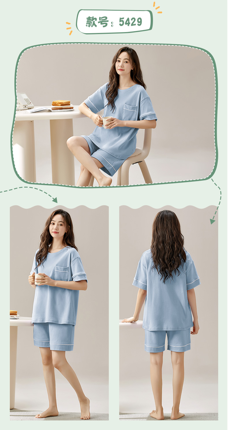 自然醒青梨家居服睡衣女款夏季100纯棉短袖短裤夏天家居服女士夏款套装可外穿QH