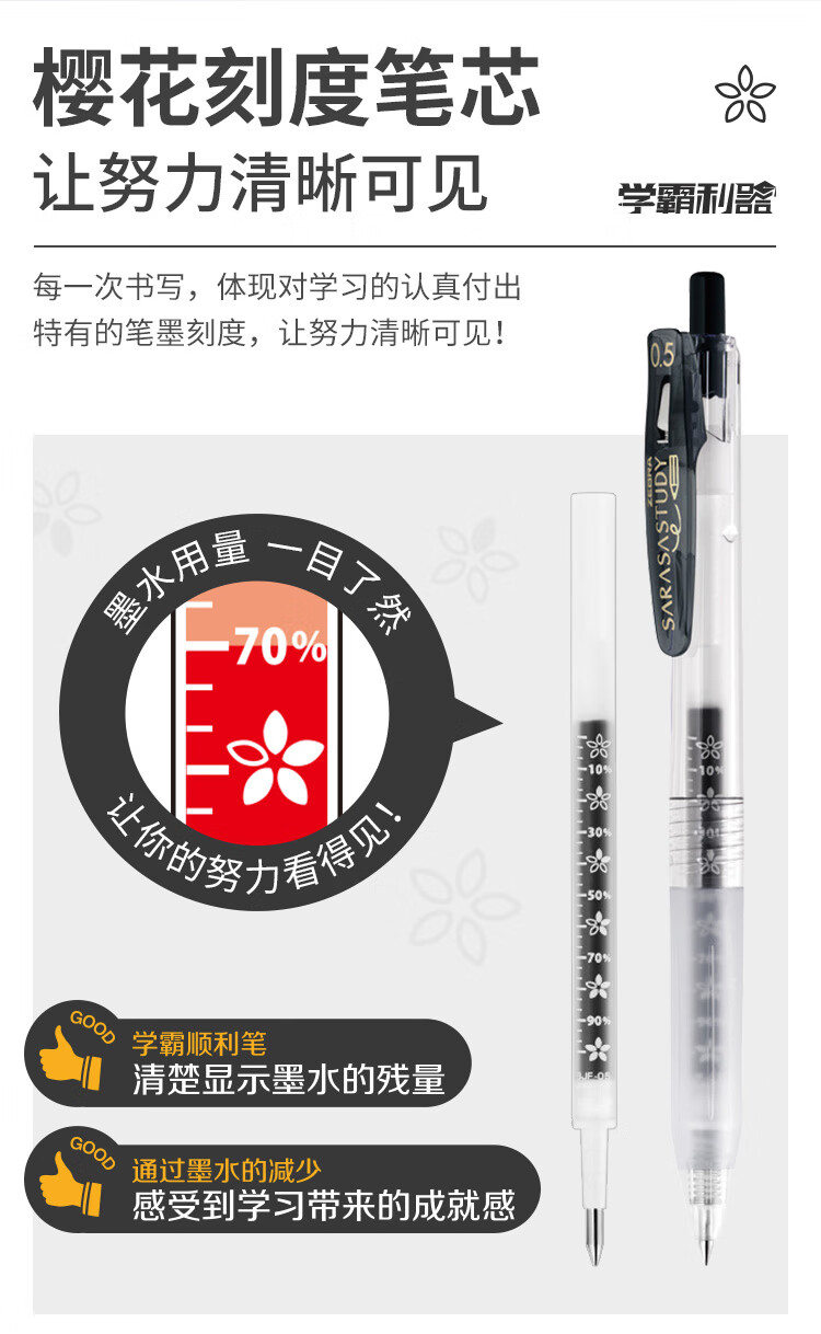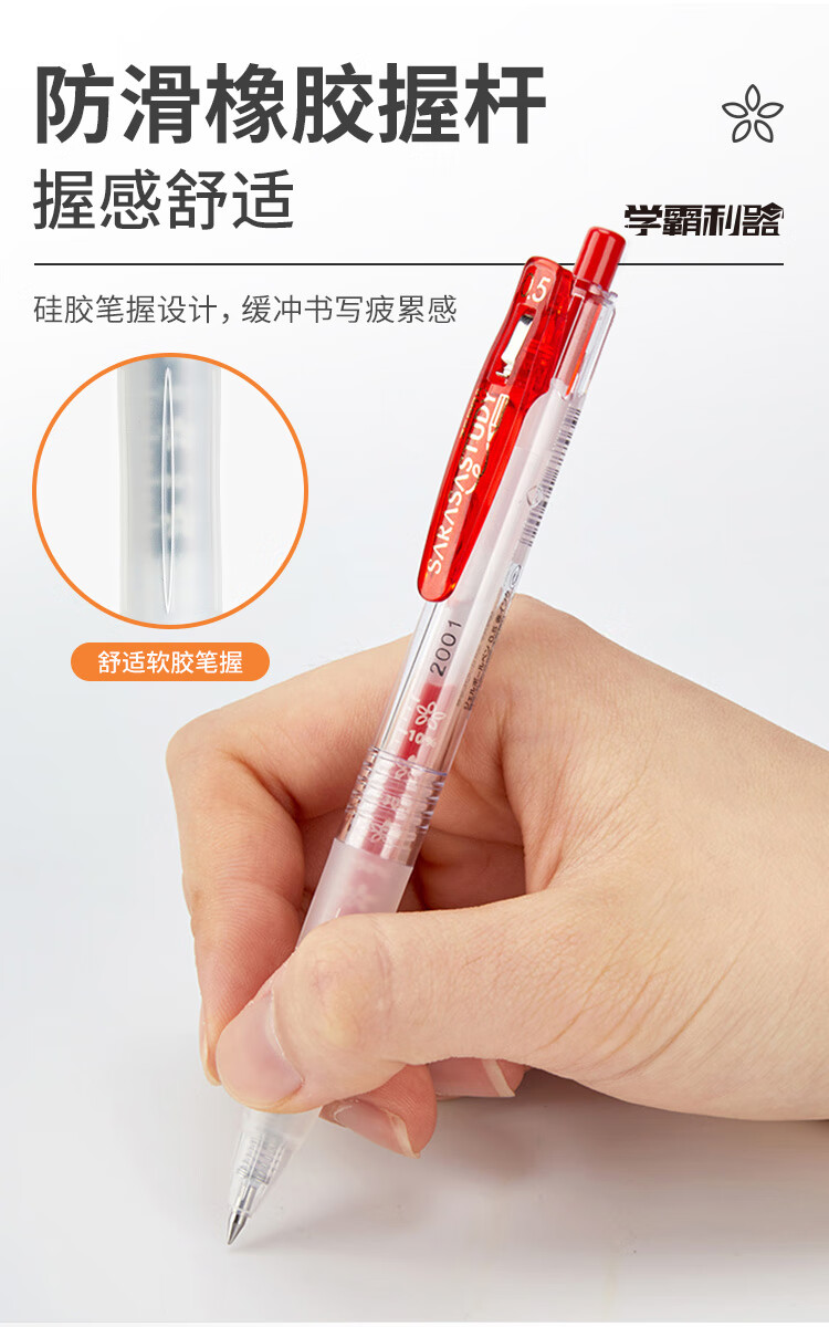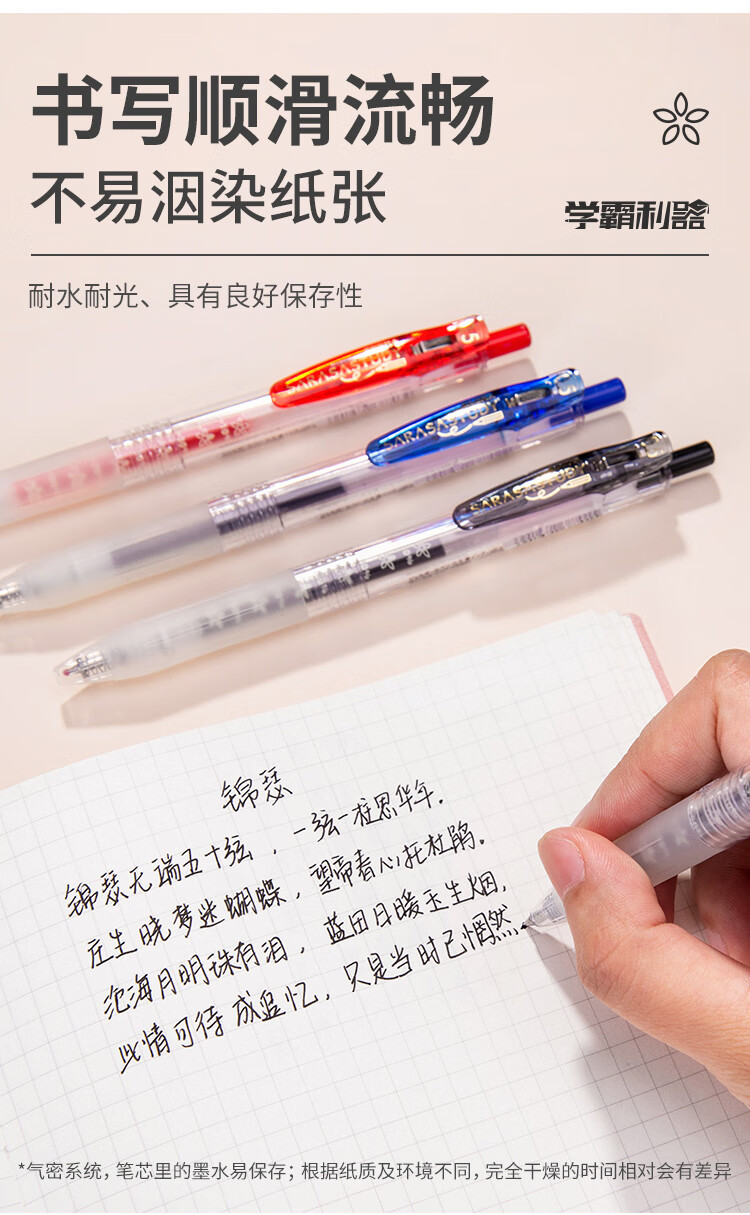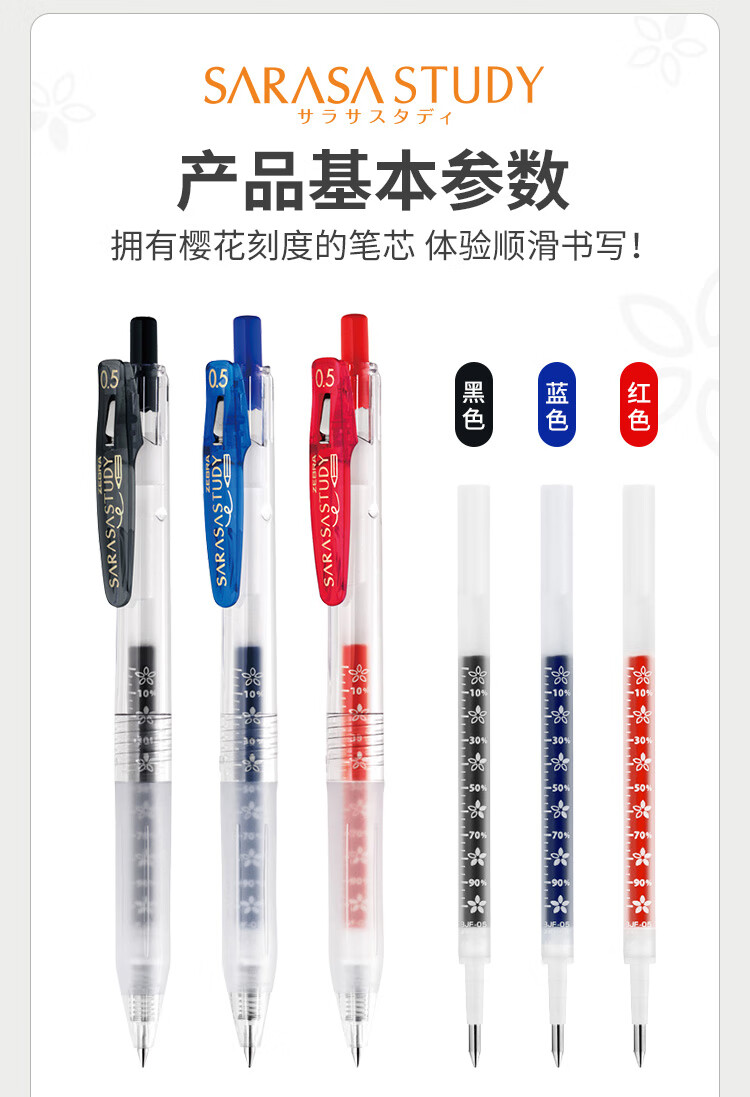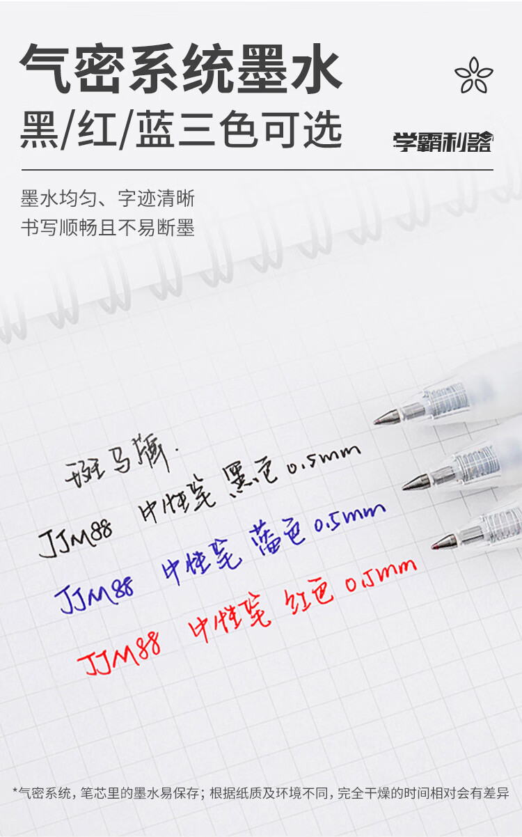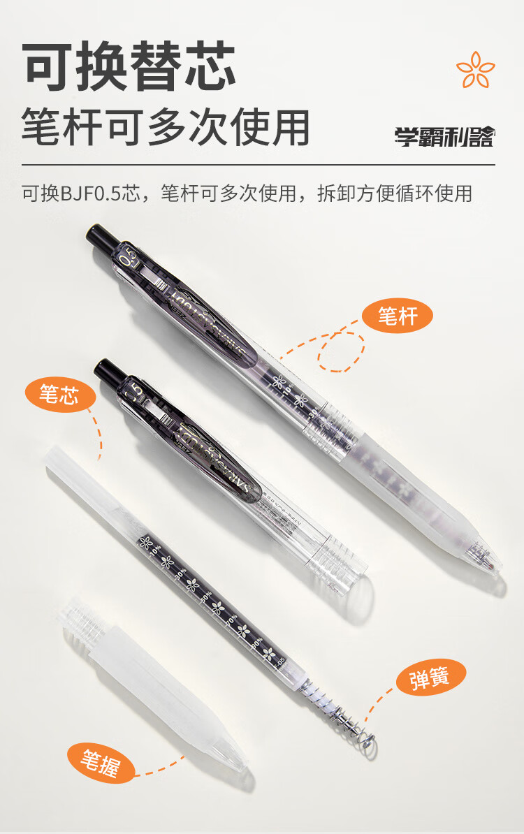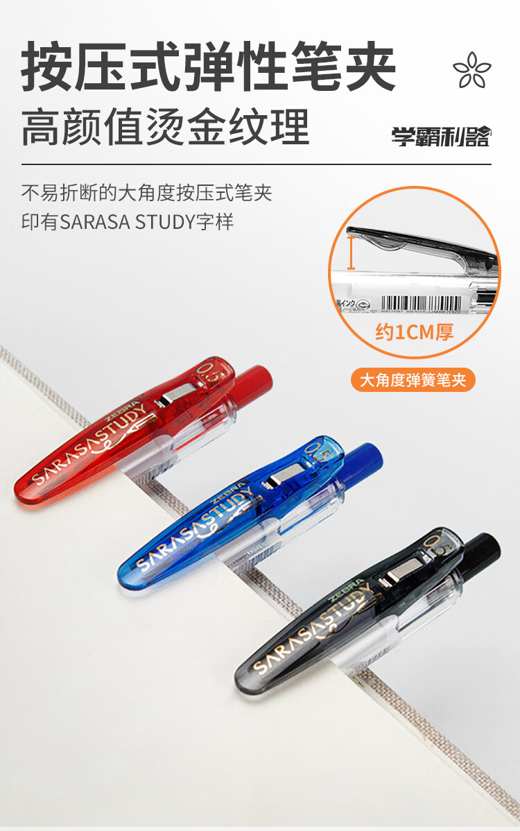 斑马牌ZEBRA JJM88子弹头按动中性笔0.5mm黑/蓝/红色 学生批改签字笔花朵刻度