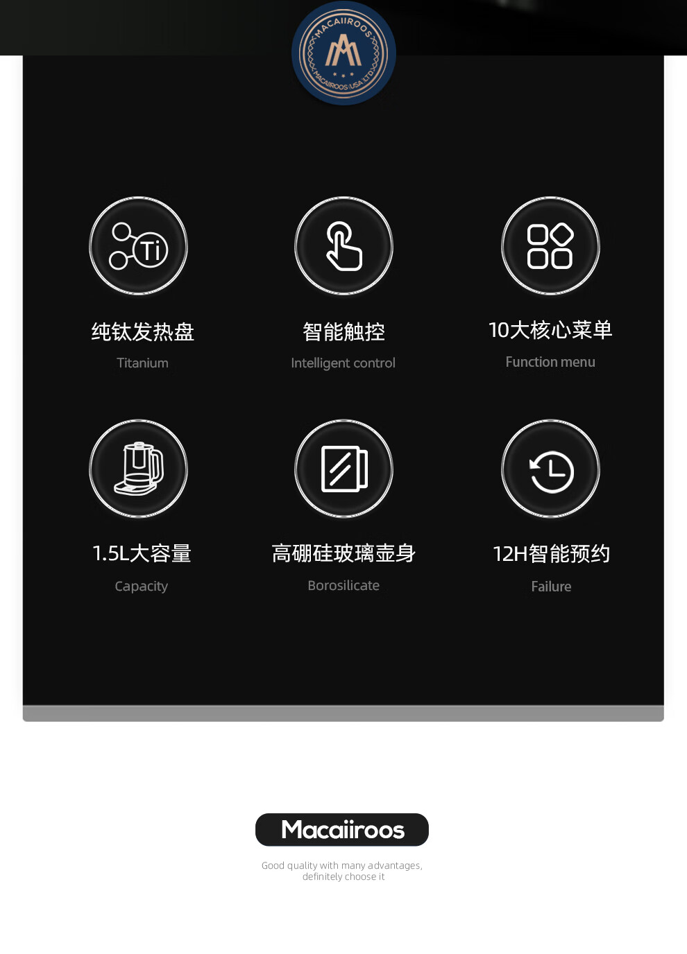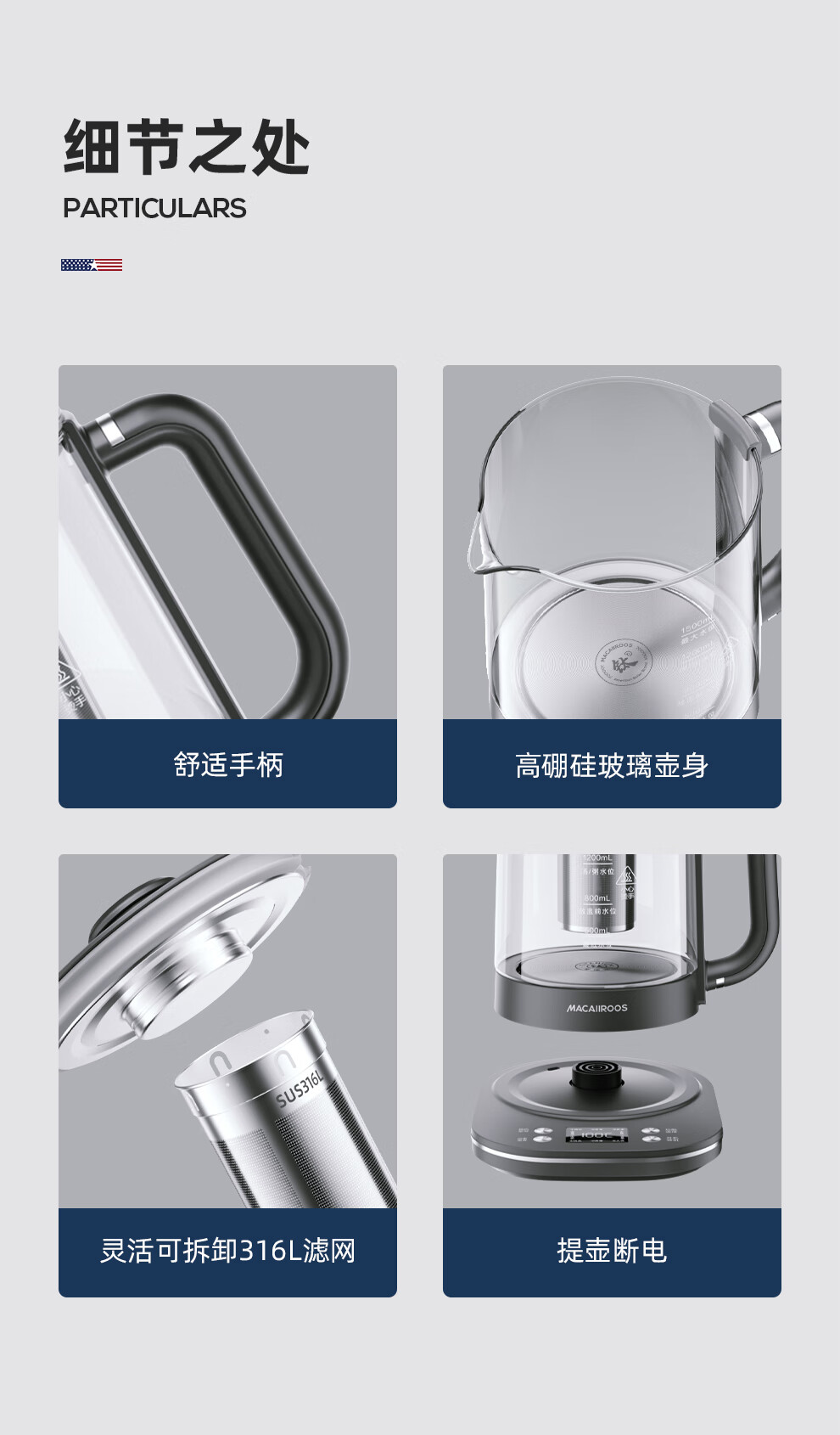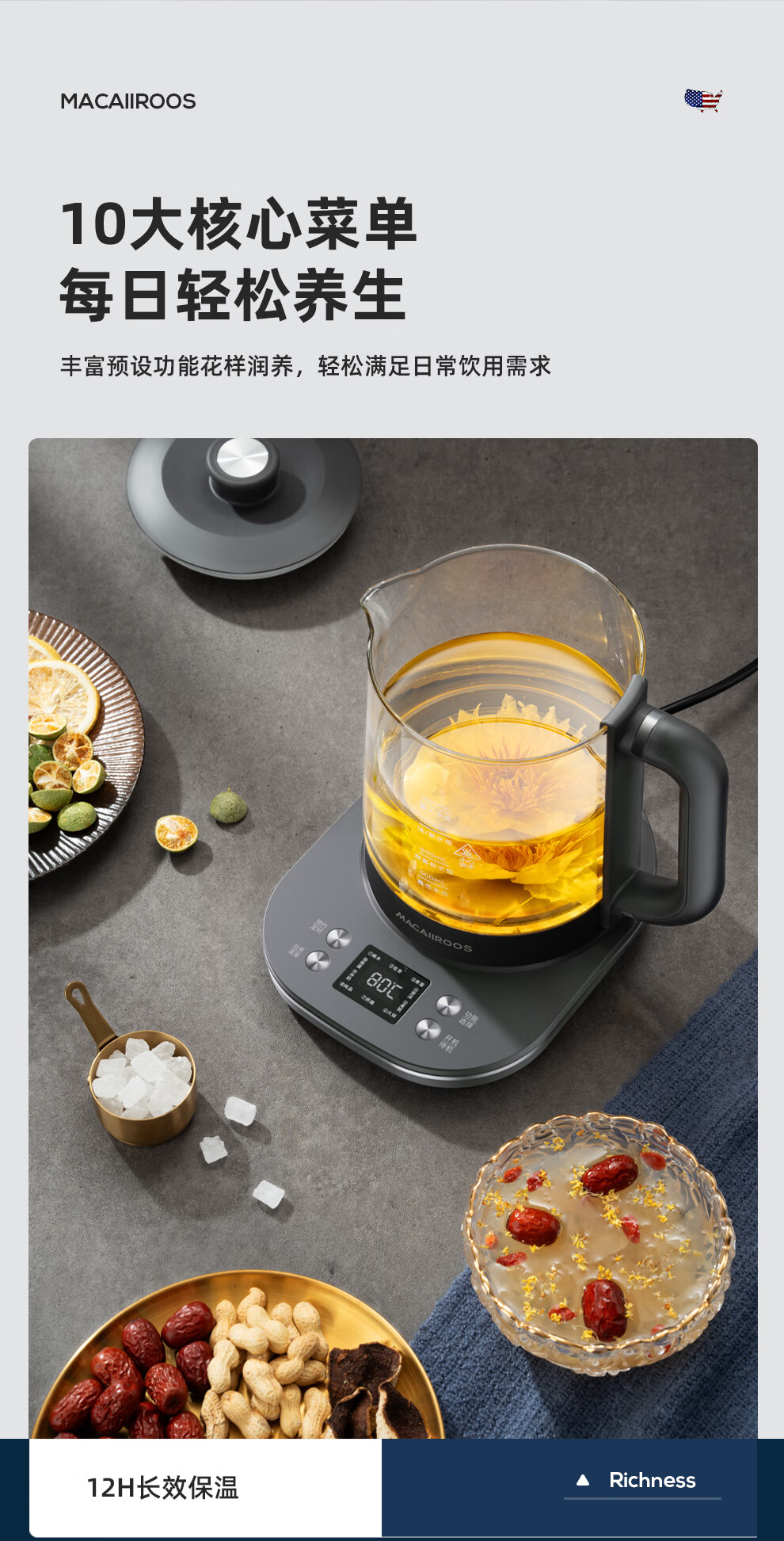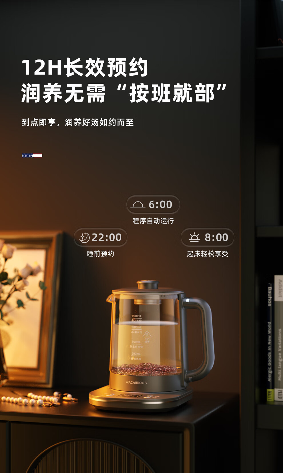 【小家电】迈卡罗MACAIIROOS养生壶纯钛发热盘 1.5L电水壶高硼硅玻璃烧水壶电热水壶开水壶 煮茶壶玻璃电茶壶 MC-YS1536 HF