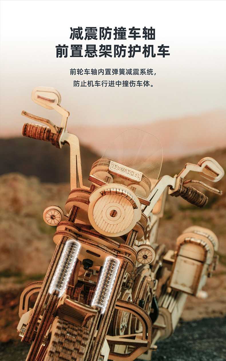 【榫卯摩托车 体验桌面驾控乐趣】ROKR若客巡航摩托车 机械动力 骑士之魂 摩托车模型玩具
