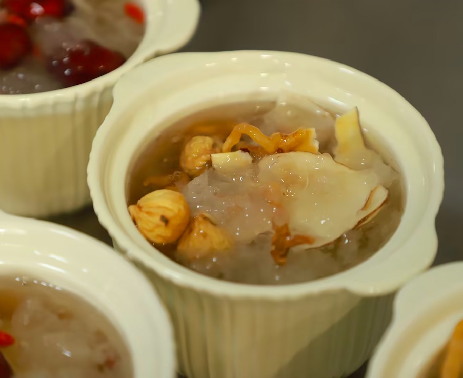 大颗粒无杂质桃胶,精选海底椰,红枣枸杞,玉竹片,冰糖烤箱高火烤制。