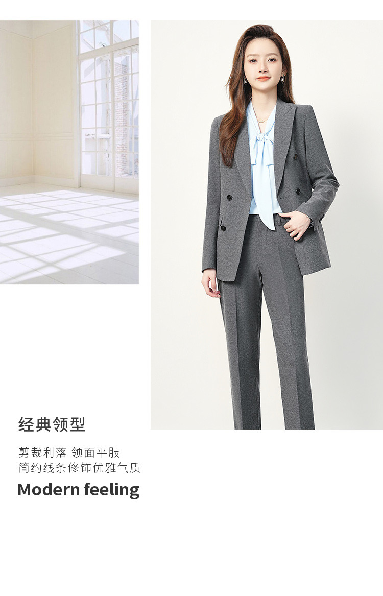 【上衣+裤子】罗蒙女士西服套装时尚创驳领职业装通勤舒适干练两件套女
