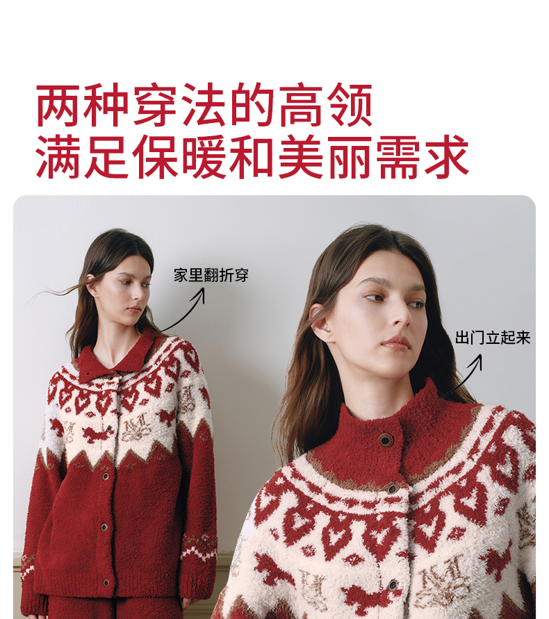 嫚熙秋冬牛油果半边绒月子服加绒产妇哺乳孕妇睡衣家居服