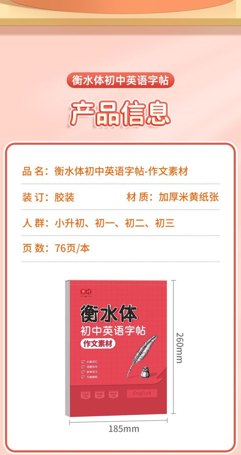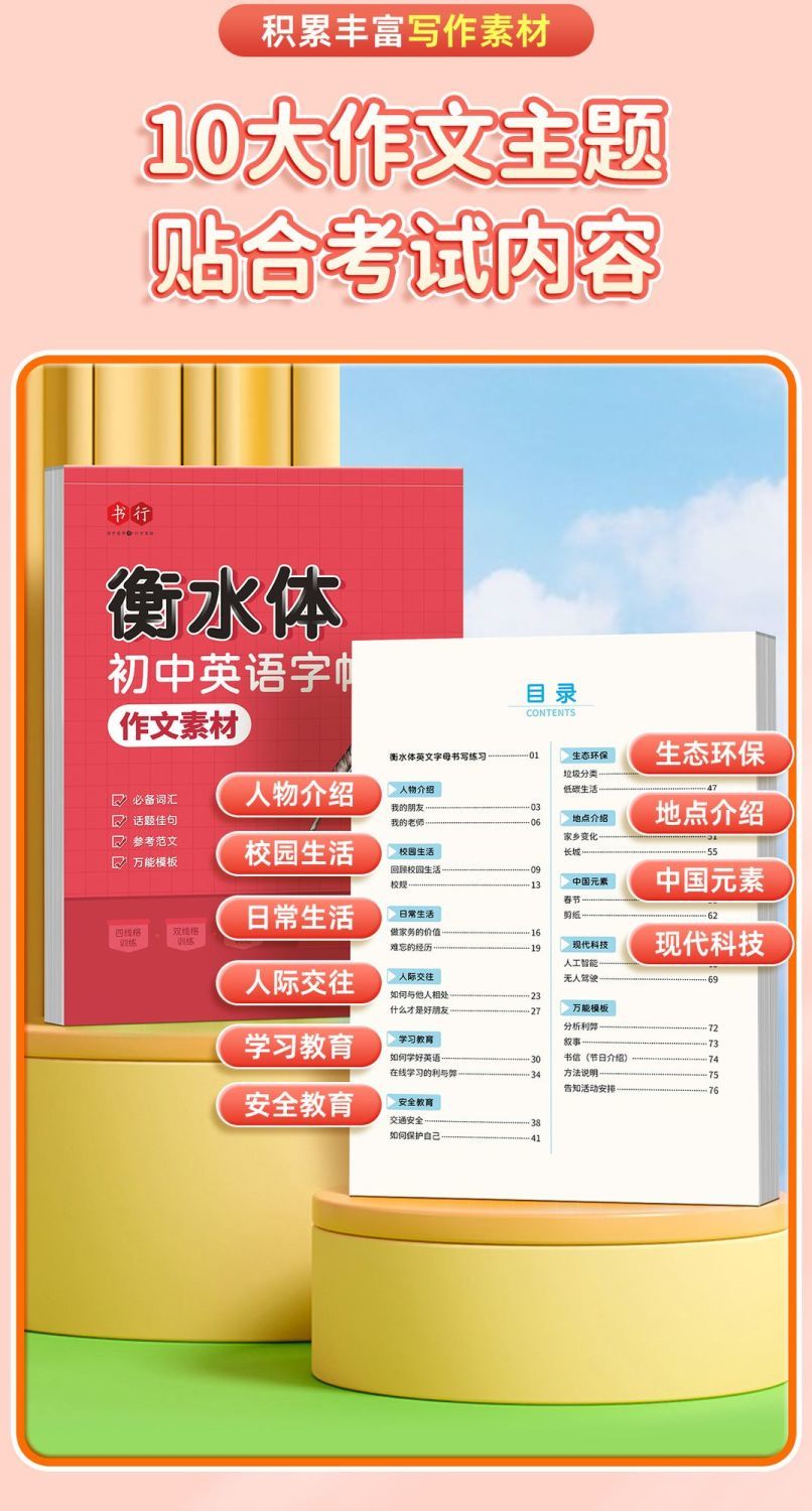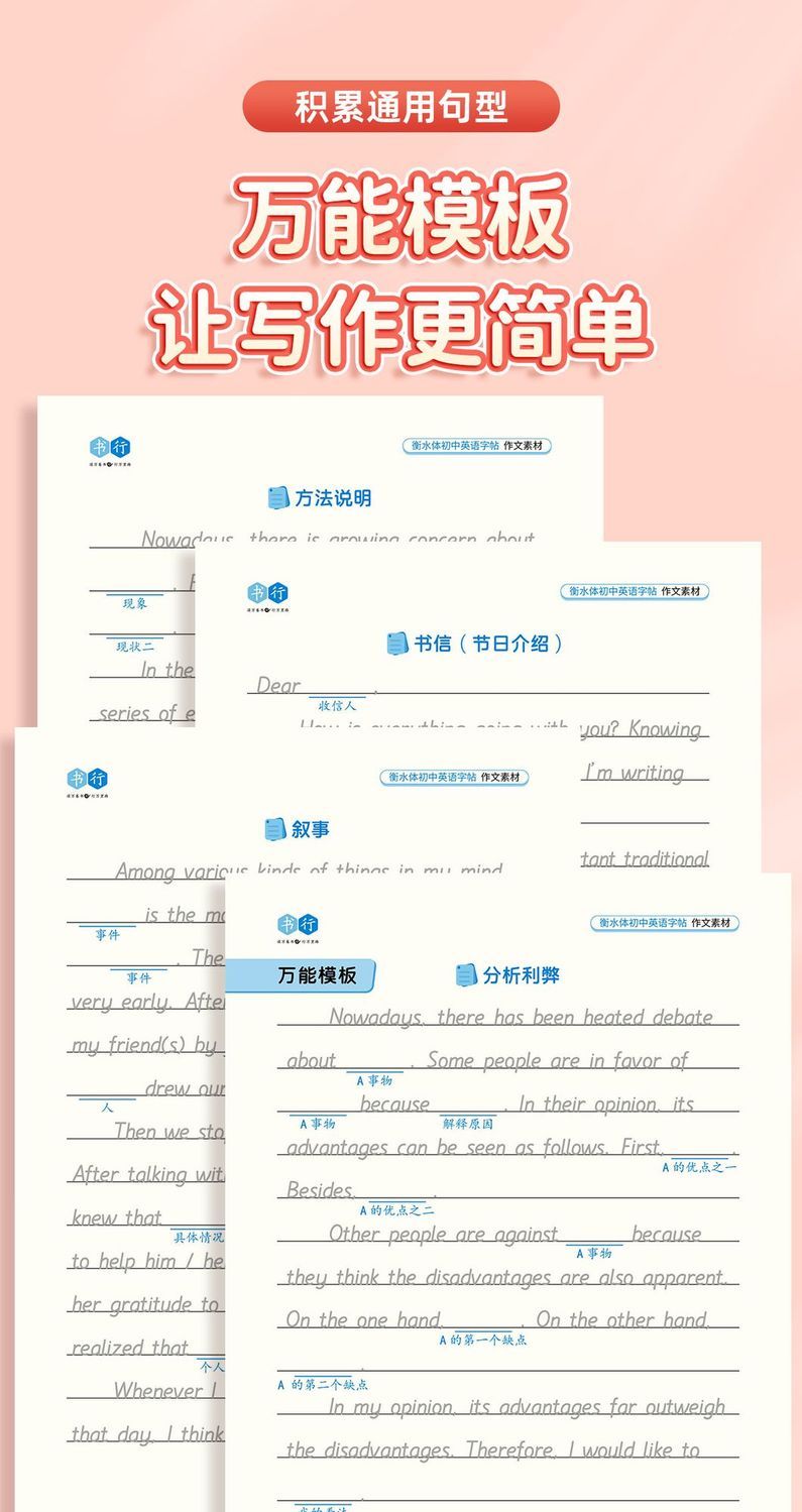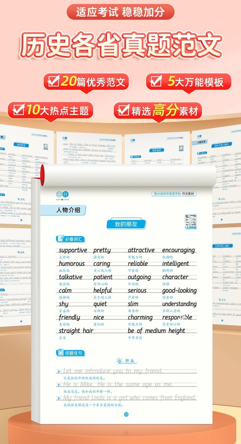 初中英语衡水体字帖2025新版七八九年级中考英语 高分作文积累字帖