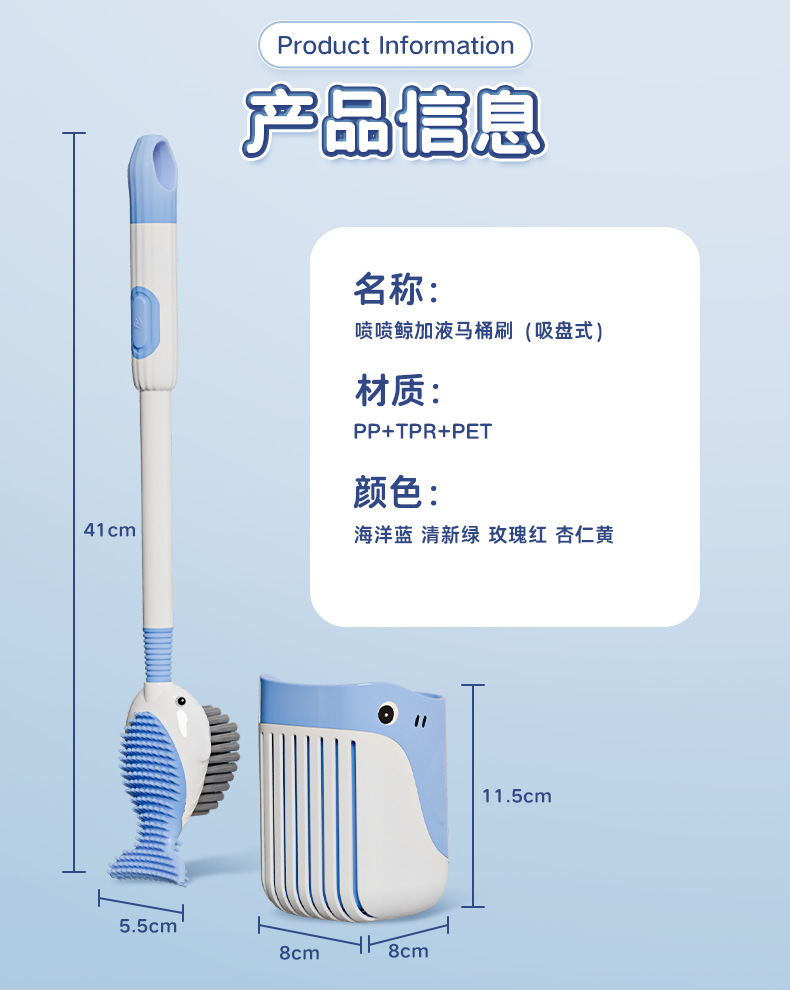 「喷液款!轻松安装」喷喷鲸加喷液马桶刷居家日用无死角清洁厕所刷子卫生间壁挂硅胶带底座工具