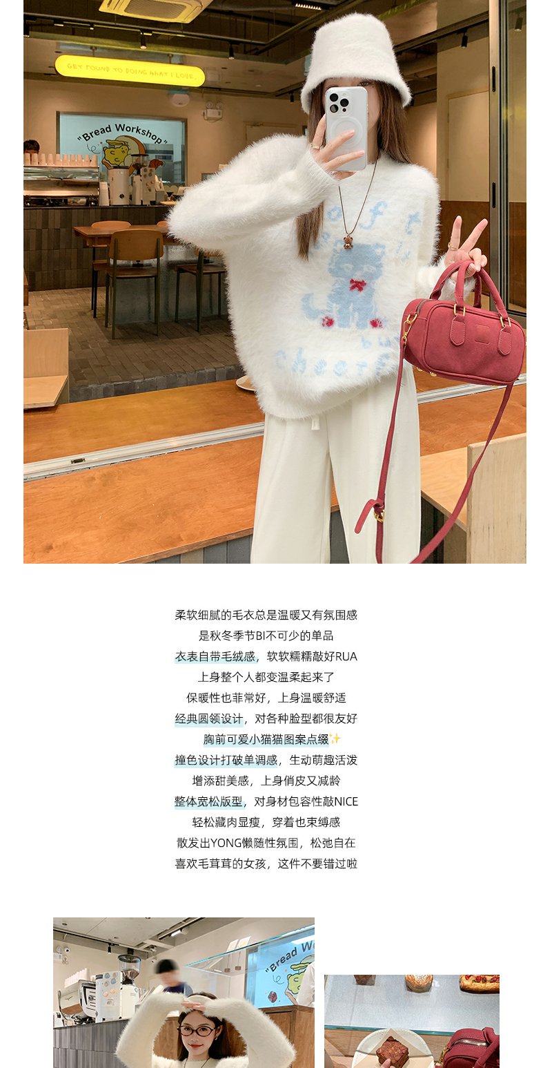 <曾小咸推荐>现货秒杀 !微信超特价!猫咪图案圆领毛衣 日常199.99/件 立减110 秒杀89.99/件!!