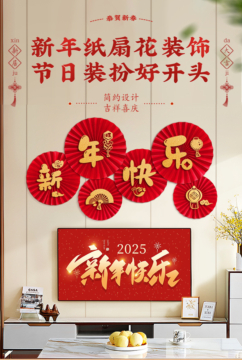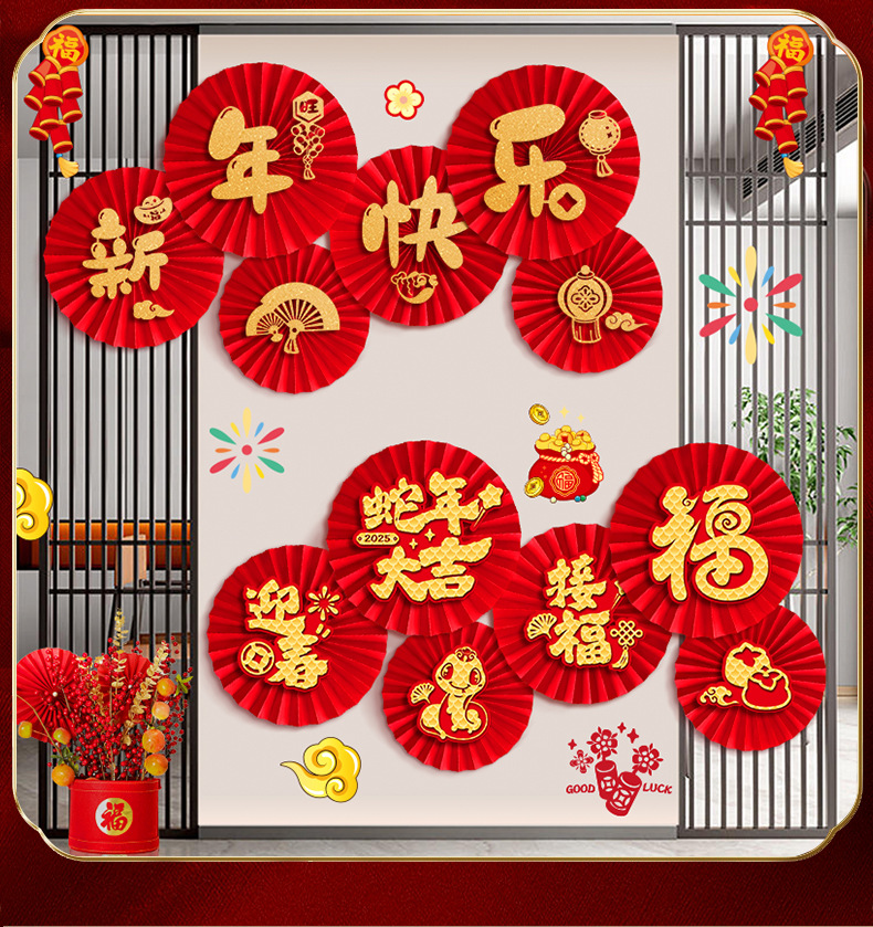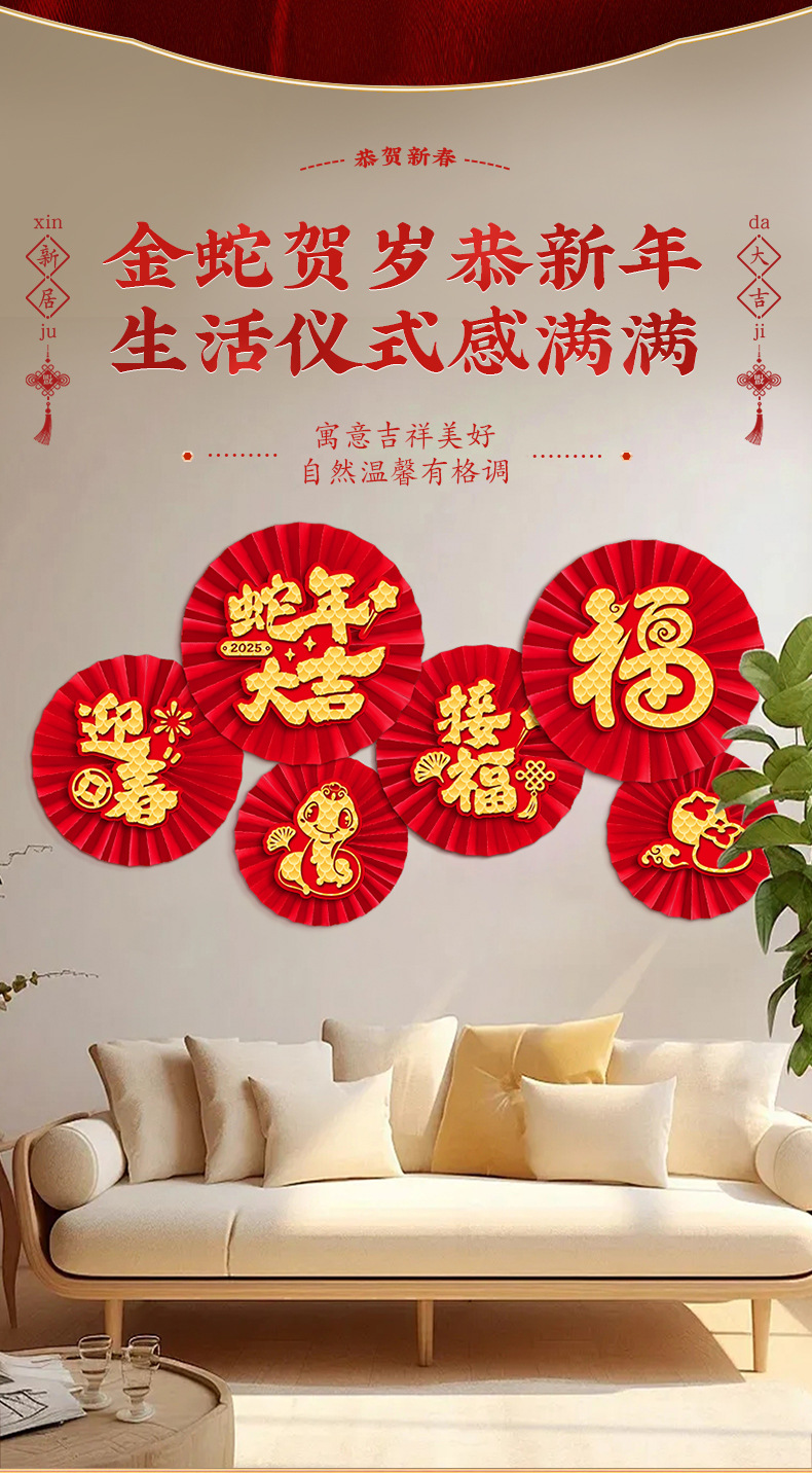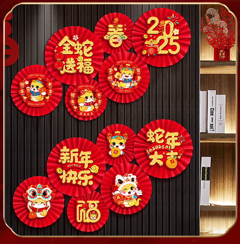「数款可选!新年纸扇花」2025新款新年纸扇花蛇年过年客厅背景墙装饰春节墙贴家居饰品场景布置