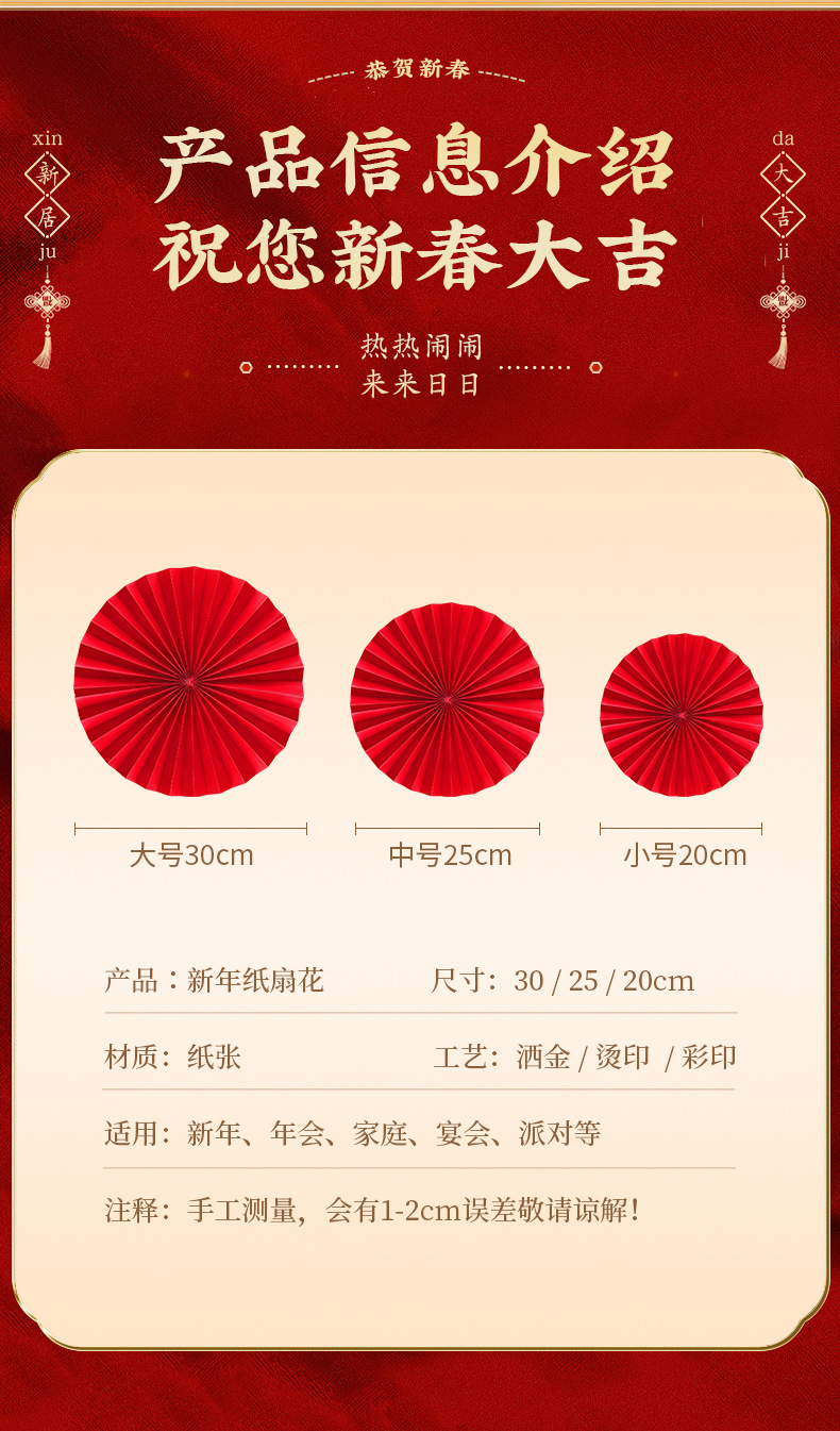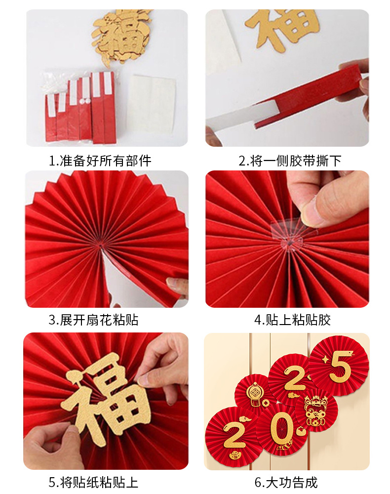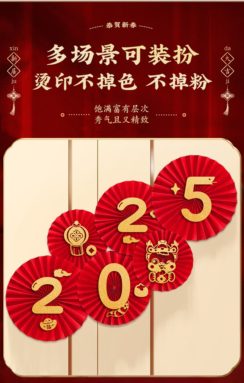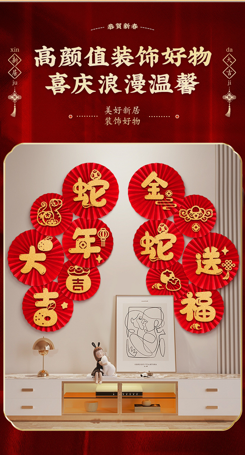 「数款可选!新年纸扇花」2025新款新年纸扇花蛇年过年客厅背景墙装饰春节墙贴家居饰品场景布置