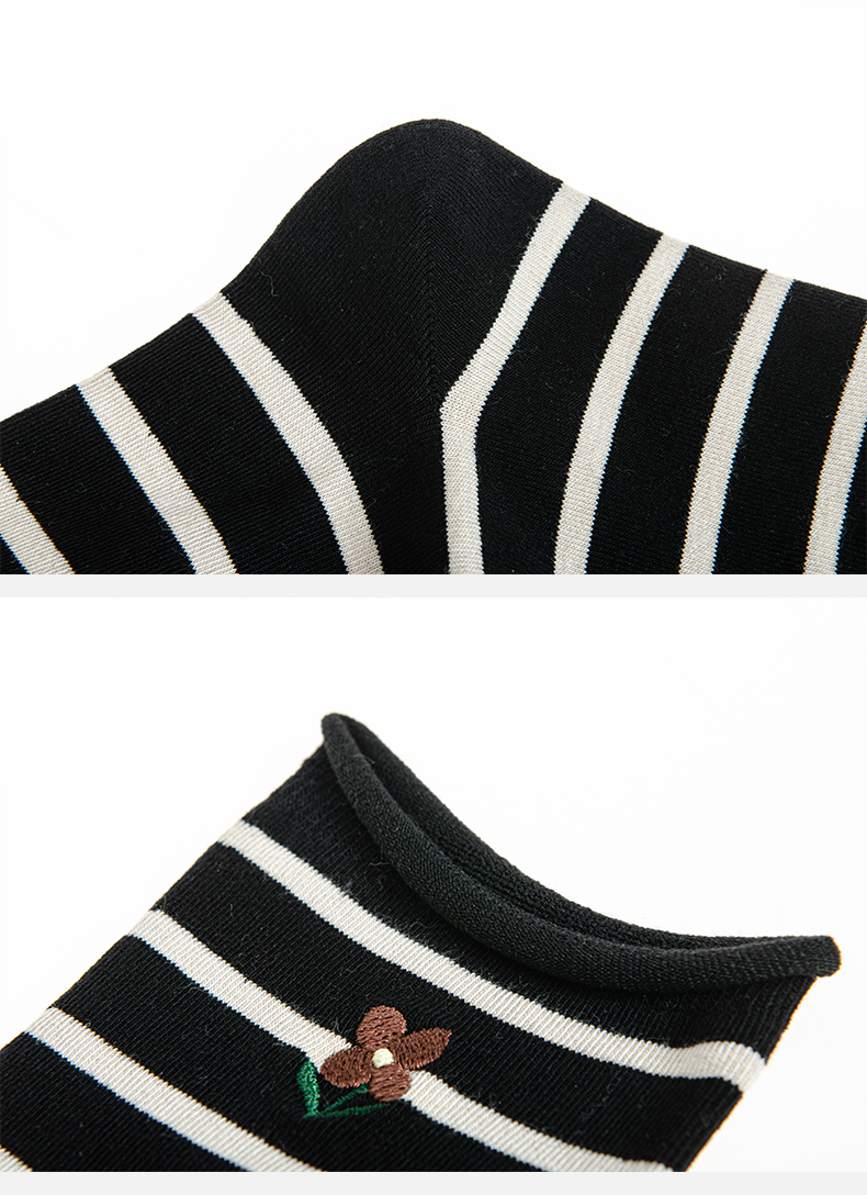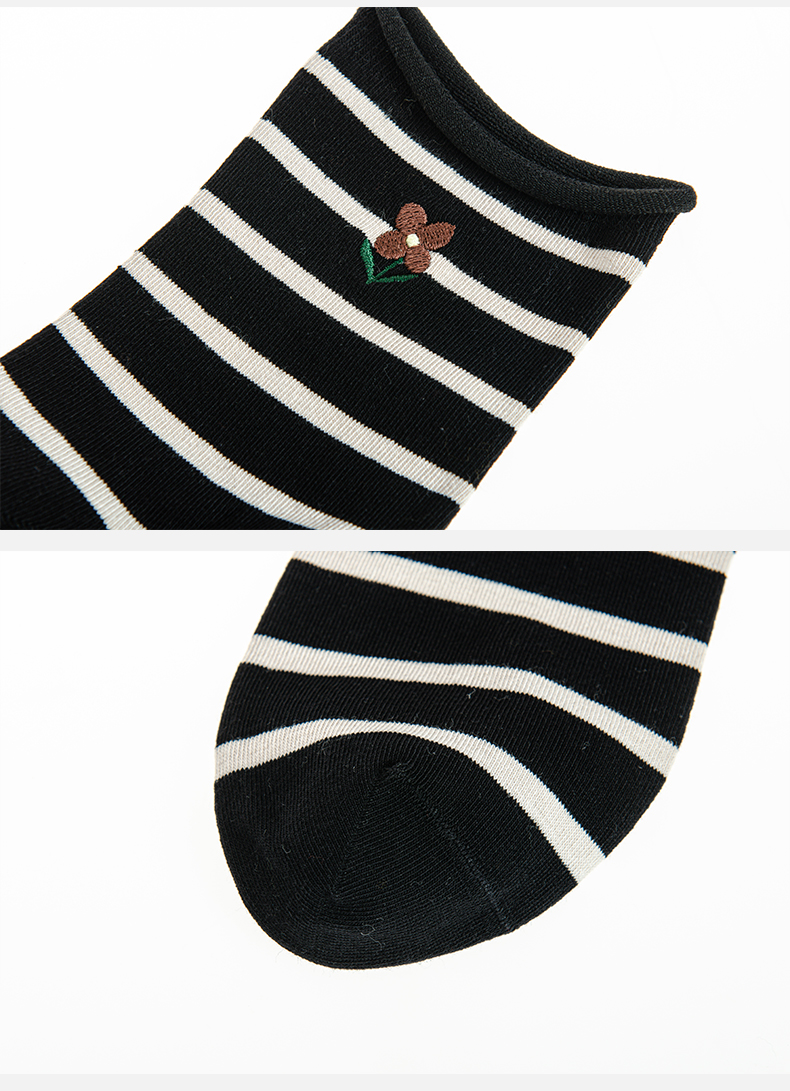 【新款上市 6件6折】女 | 女士条纹刺绣刺袜【粉色腰封2双包】条纹刺绣爱心中筒袜棉日韩百搭运动无骨缝头长筒袜女【2222209】