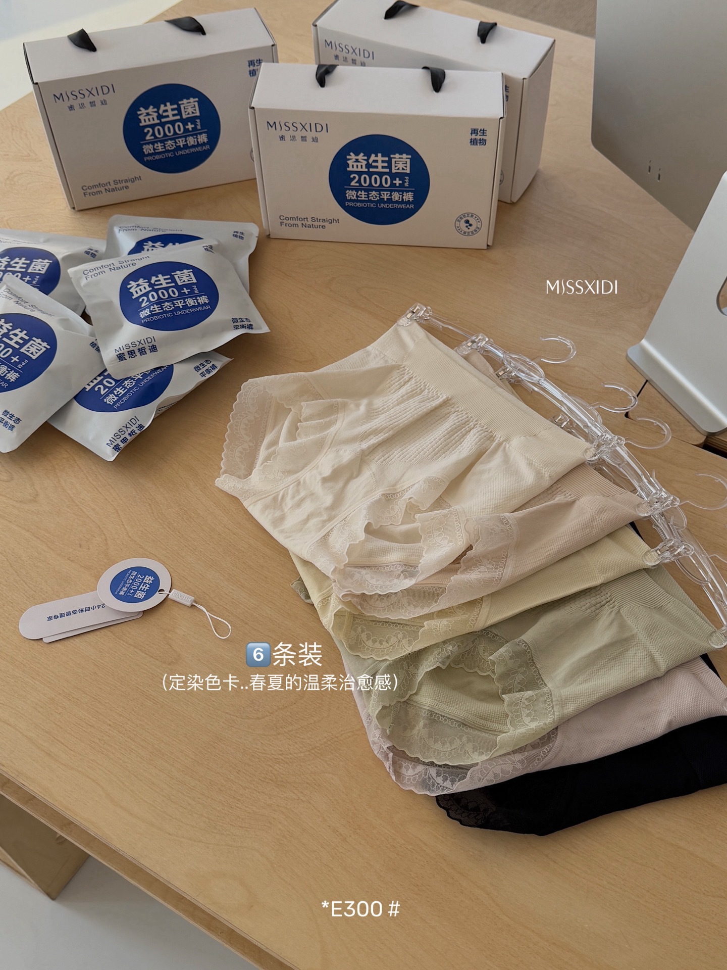 【新品益生菌生态内裤原价599!母亲节新品价89元6条!!】E300#益生菌2000+微生态平衡轻塑裤 收腹臀提蜜桃臀无痕抗菌女内裤 轻压收腹塑形维持女性私密健康内裤【独立包装拆开即穿】