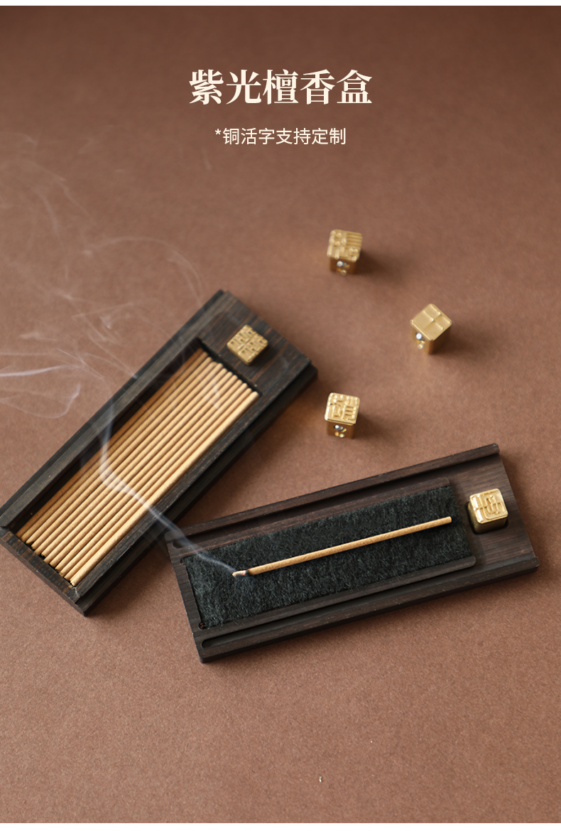 紫光檀香盒+沉香1盒+檀香1盒+礼盒+手袋香盒上的铜活字 可按客户需要定制
