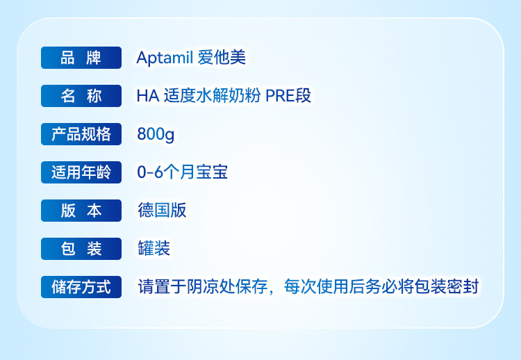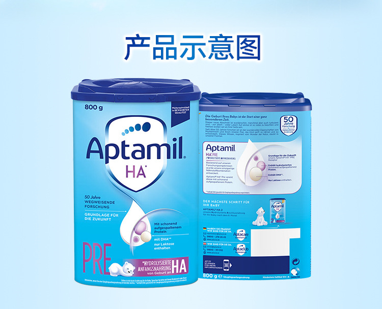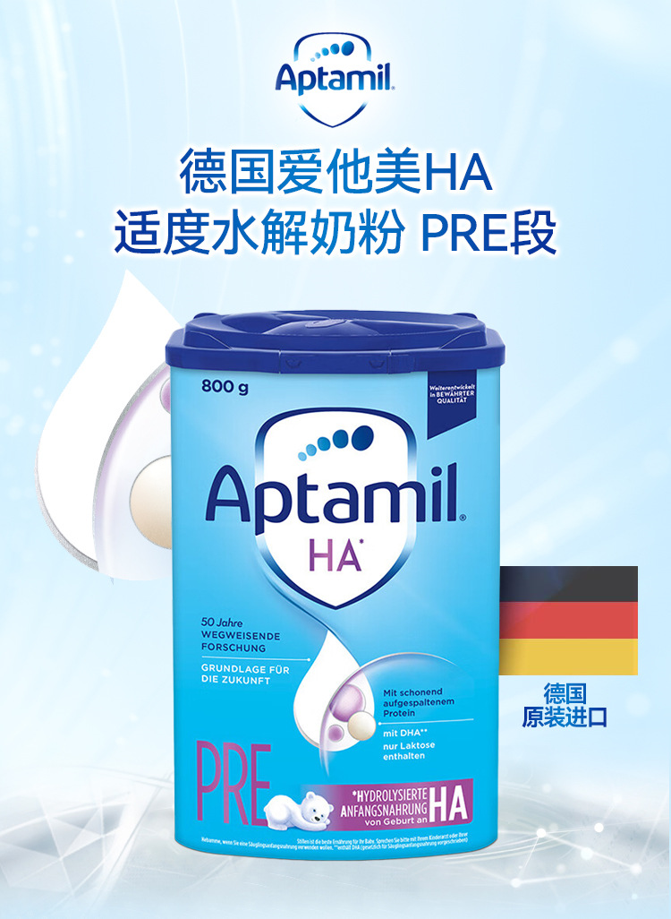 德国爱他美AptamilHA适度半水解低敏奶粉HAPREHA1HA2800g