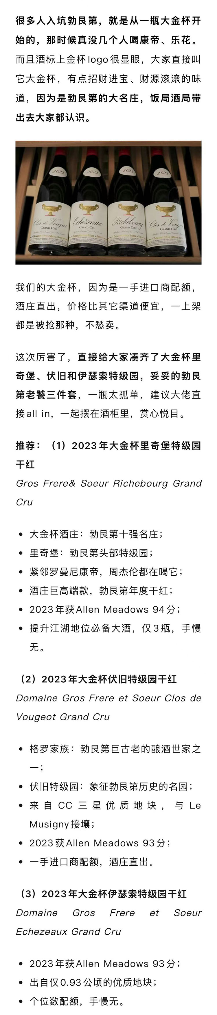 【酒桌硬通货】法国勃艮第2023年大金杯伊瑟索特级园黑皮诺干红/伏旧特级园黑皮诺干红