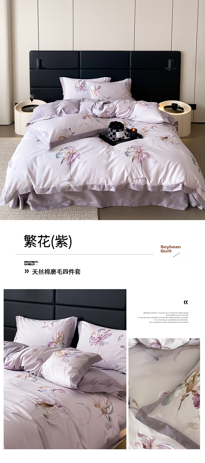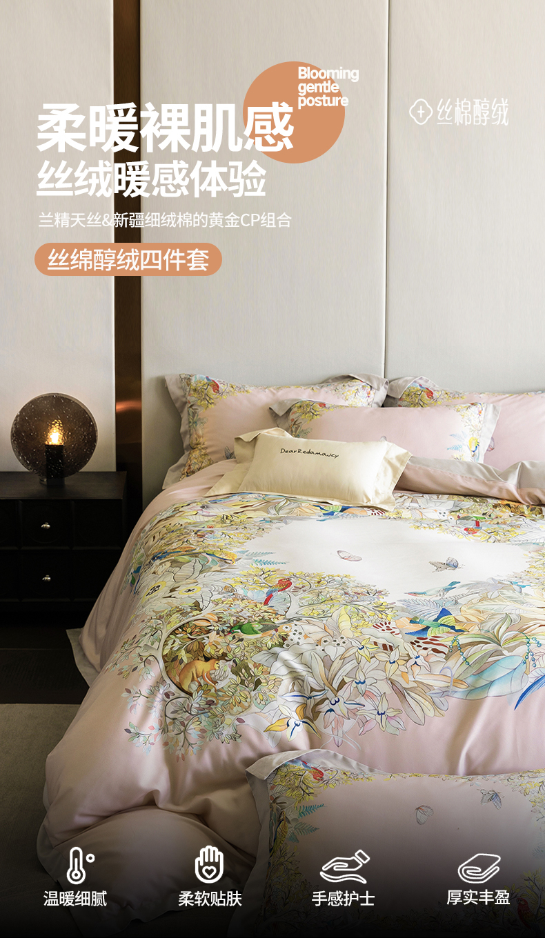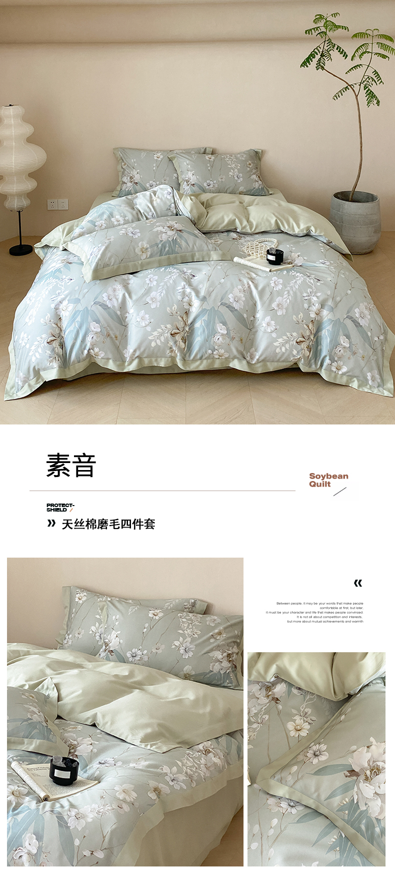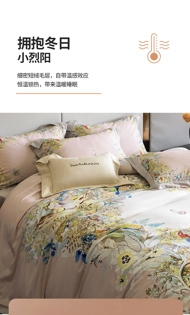 【下架】自然醒80支天丝+长绒棉磨毛四件套丝棉醇绒秋冬套件保暖亲肤柔软细腻床上用品KY