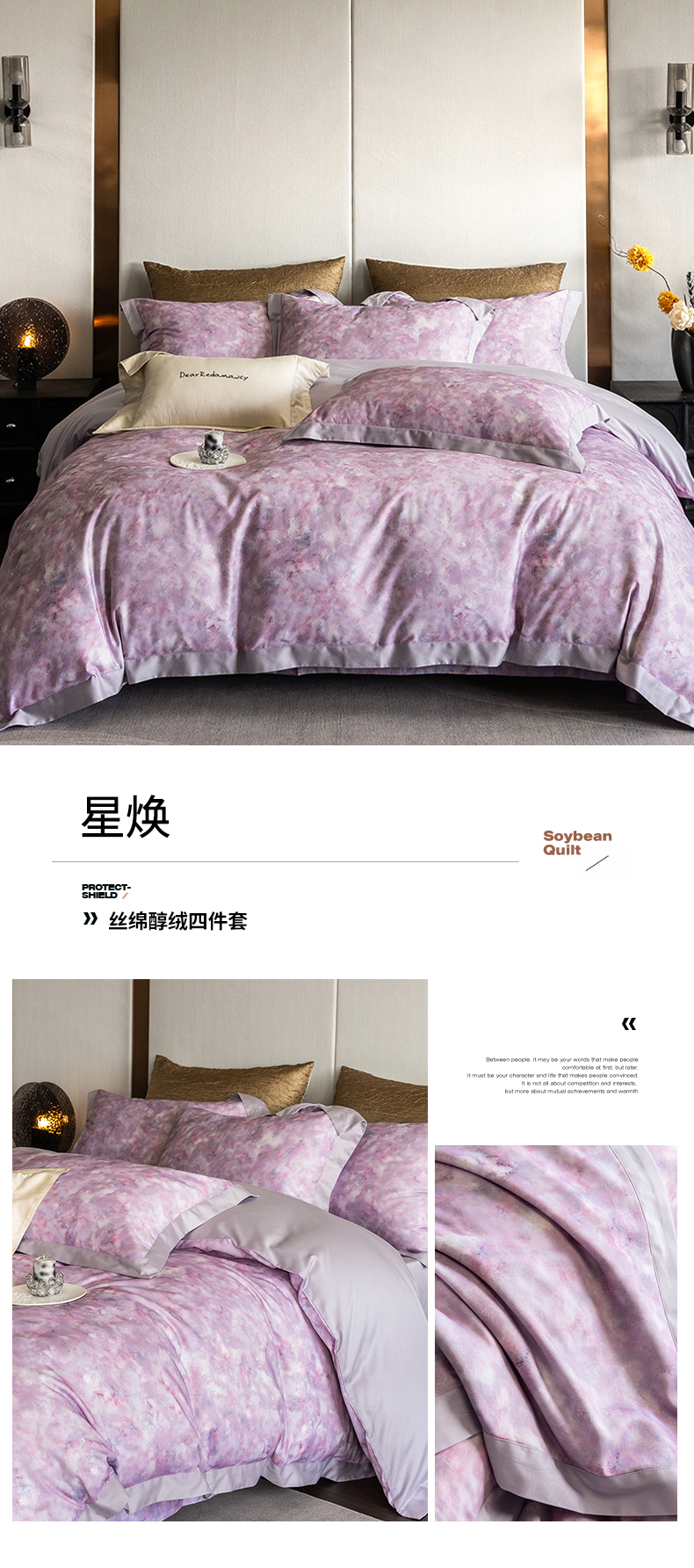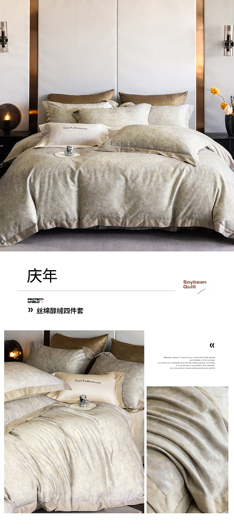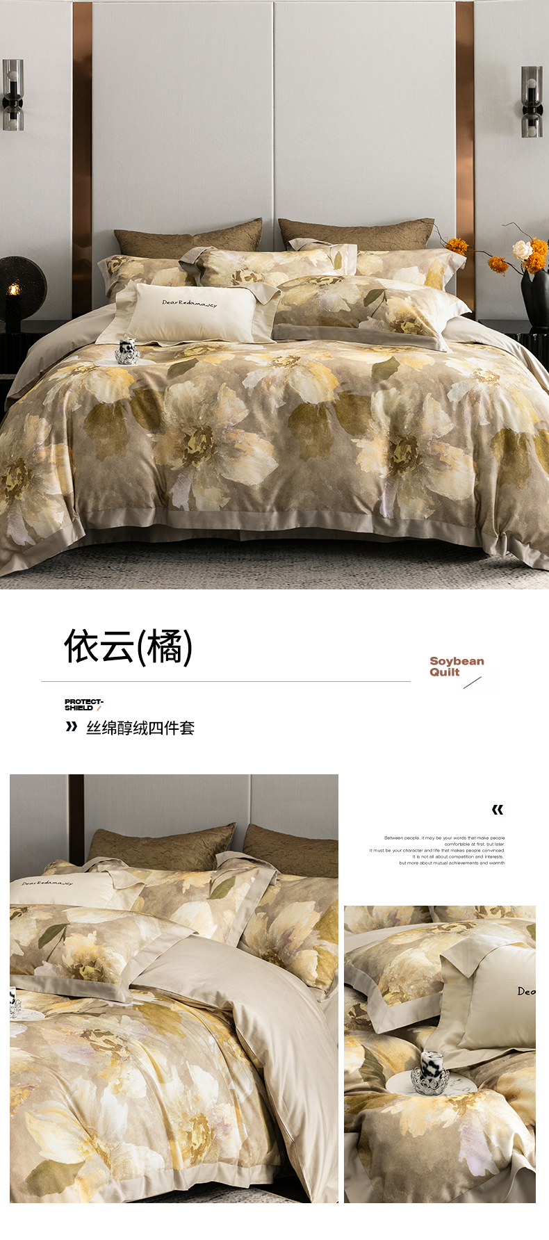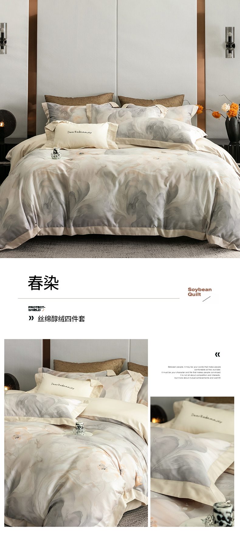 【下架】自然醒80支天丝+长绒棉磨毛四件套丝棉醇绒秋冬套件保暖亲肤柔软细腻床上用品KY