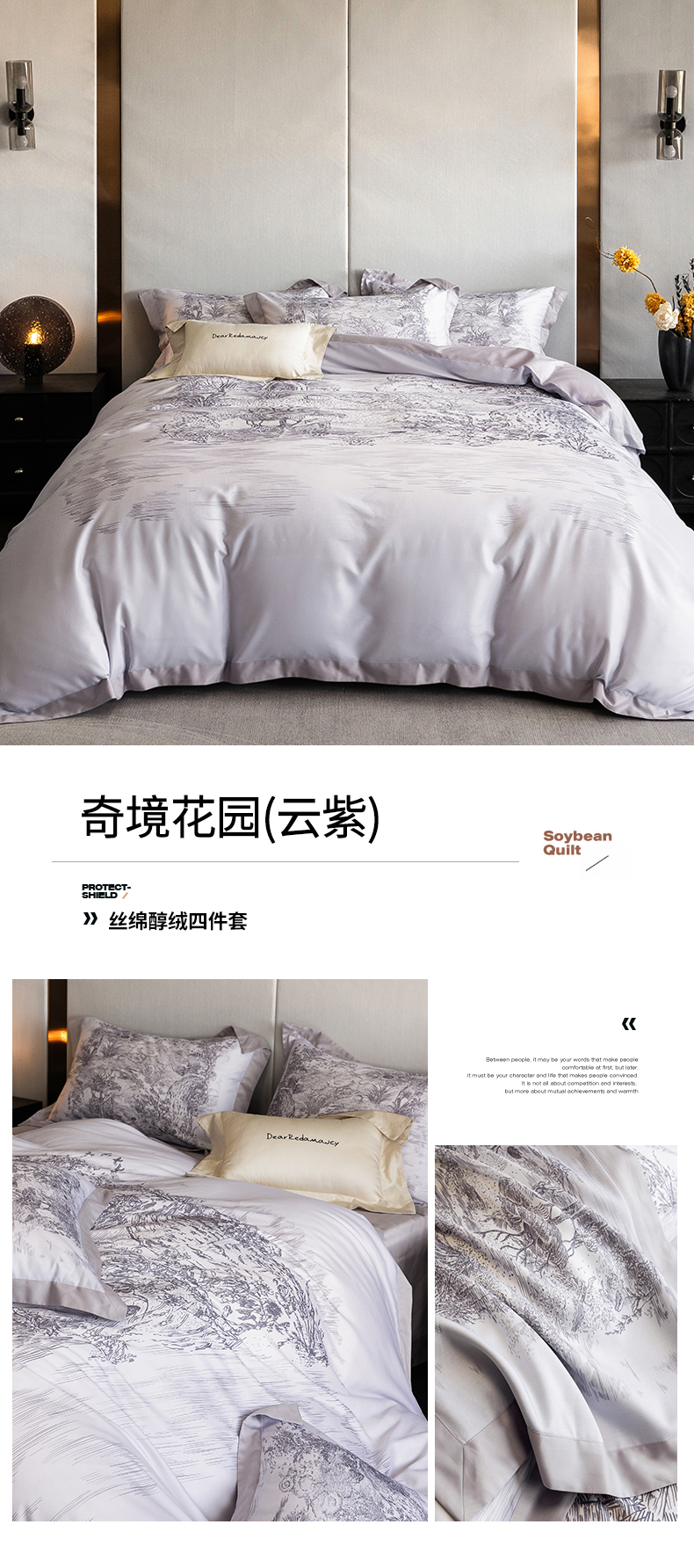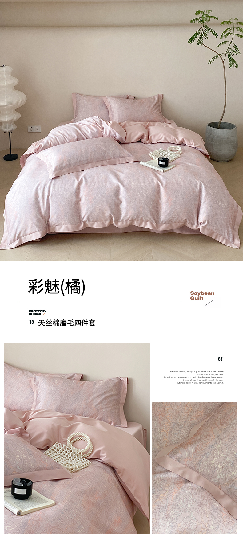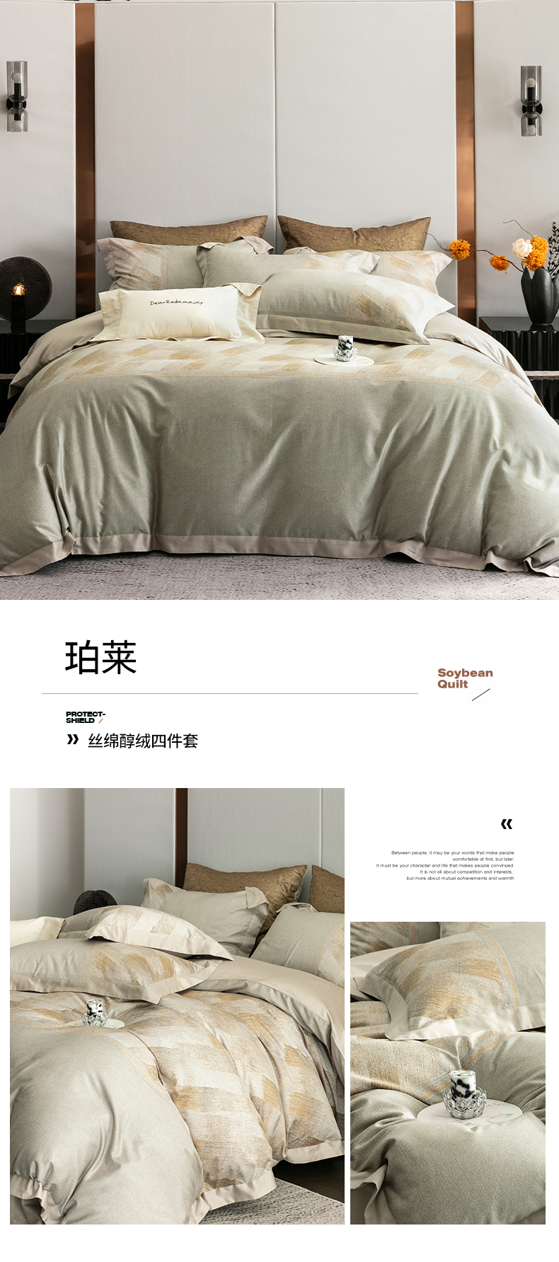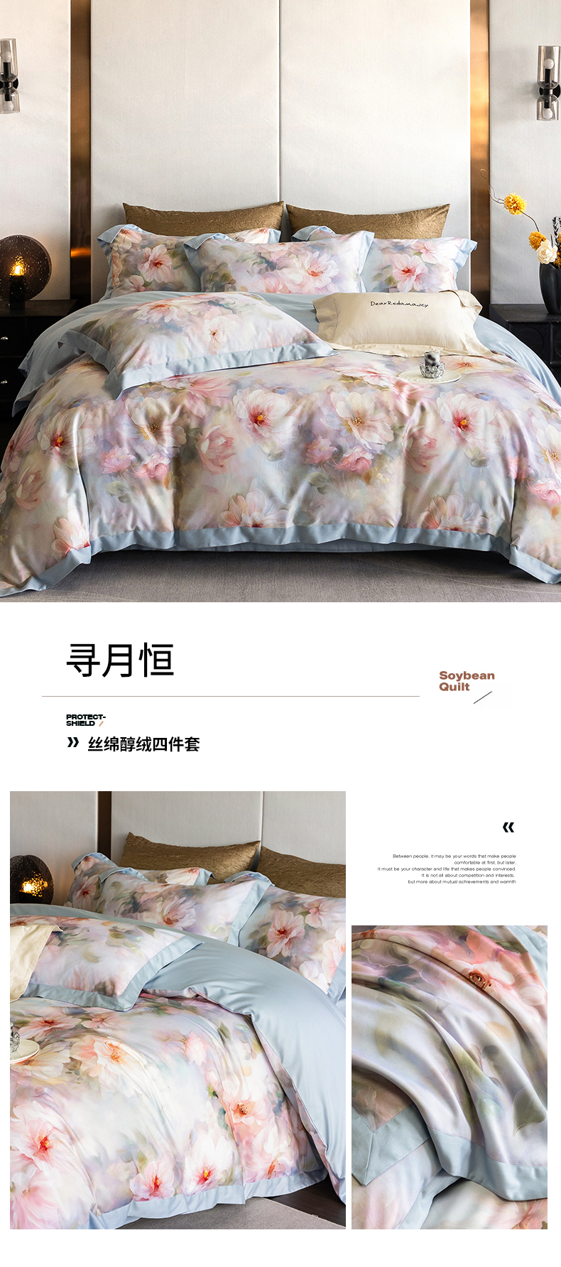 【下架】自然醒80支天丝+长绒棉磨毛四件套丝棉醇绒秋冬套件保暖亲肤柔软细腻床上用品KY
