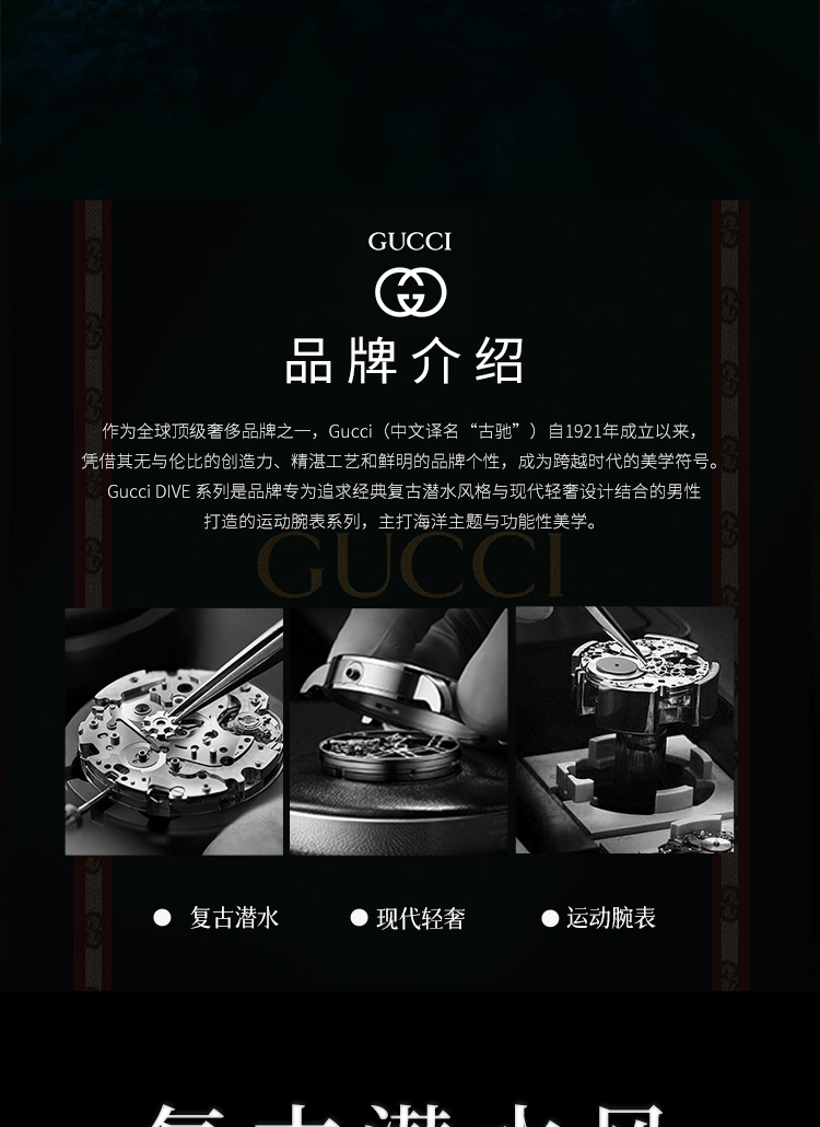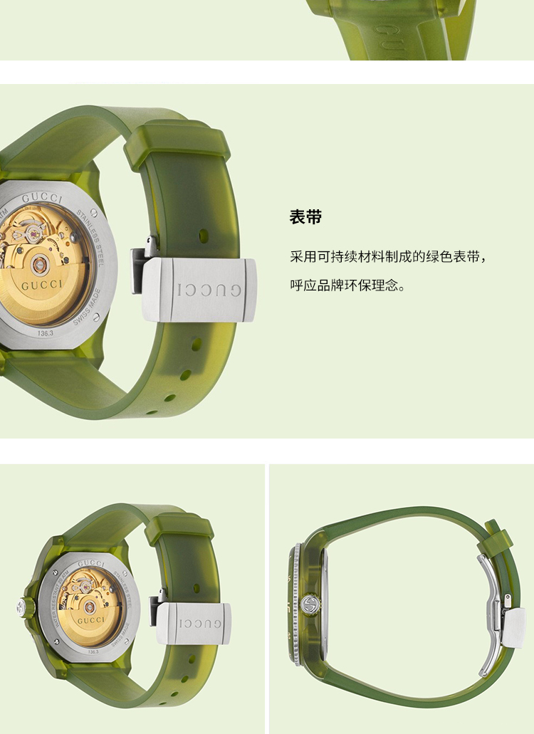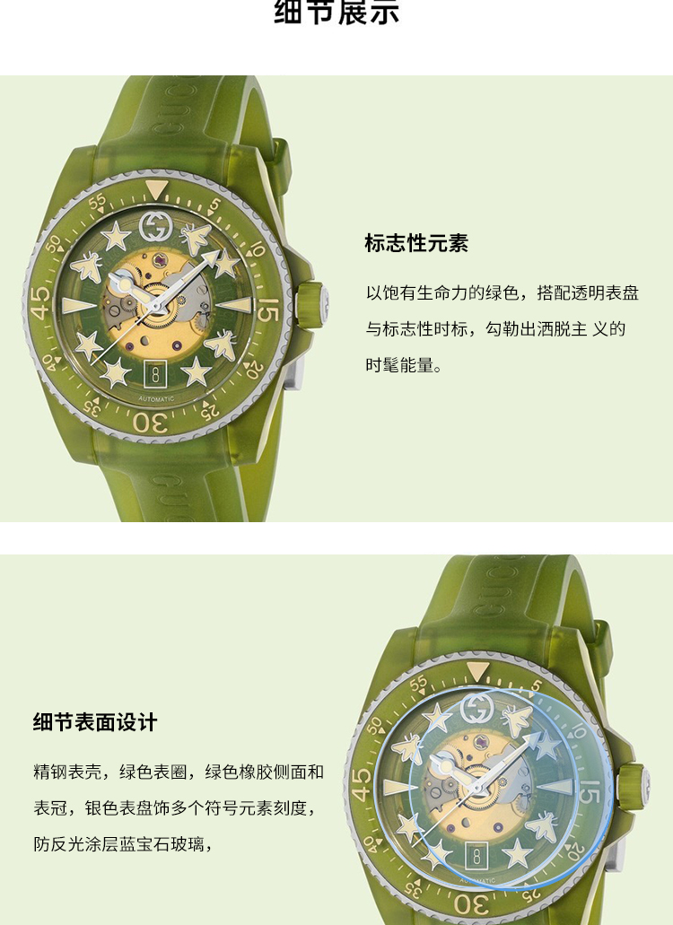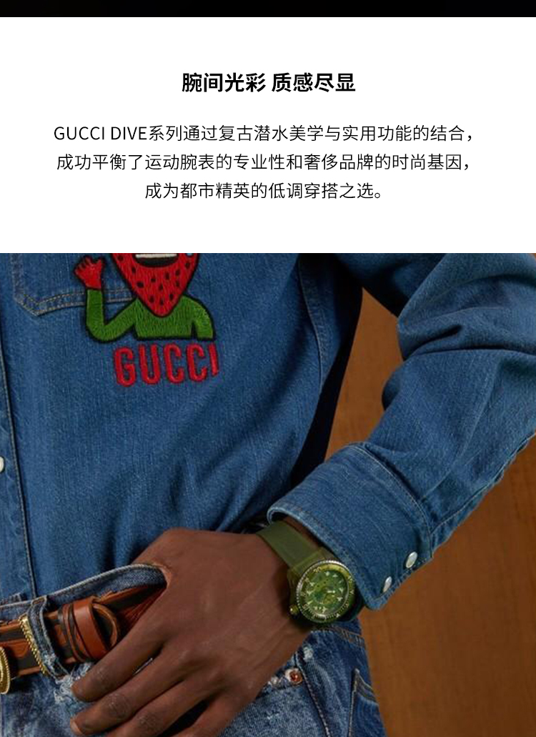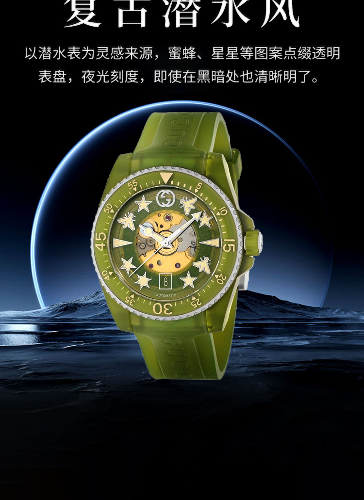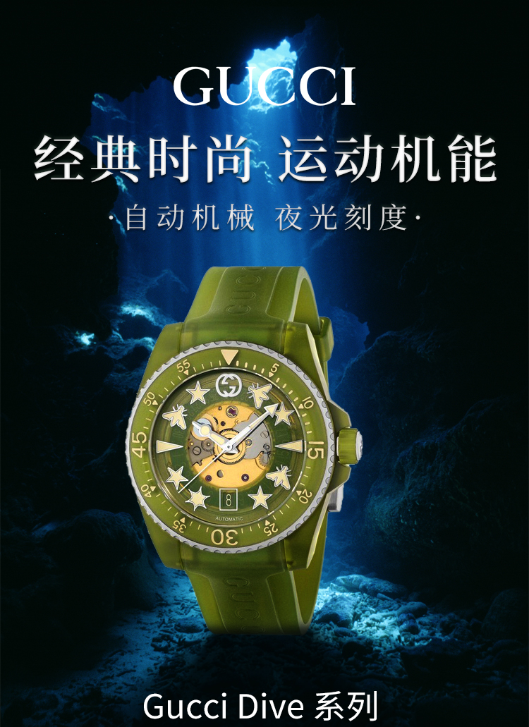 【GUCCI古驰 Dive系列腕表】 自动机械机芯 PC塑料表带 40mm 绿色表盘 男表(2.14-2.23停发)