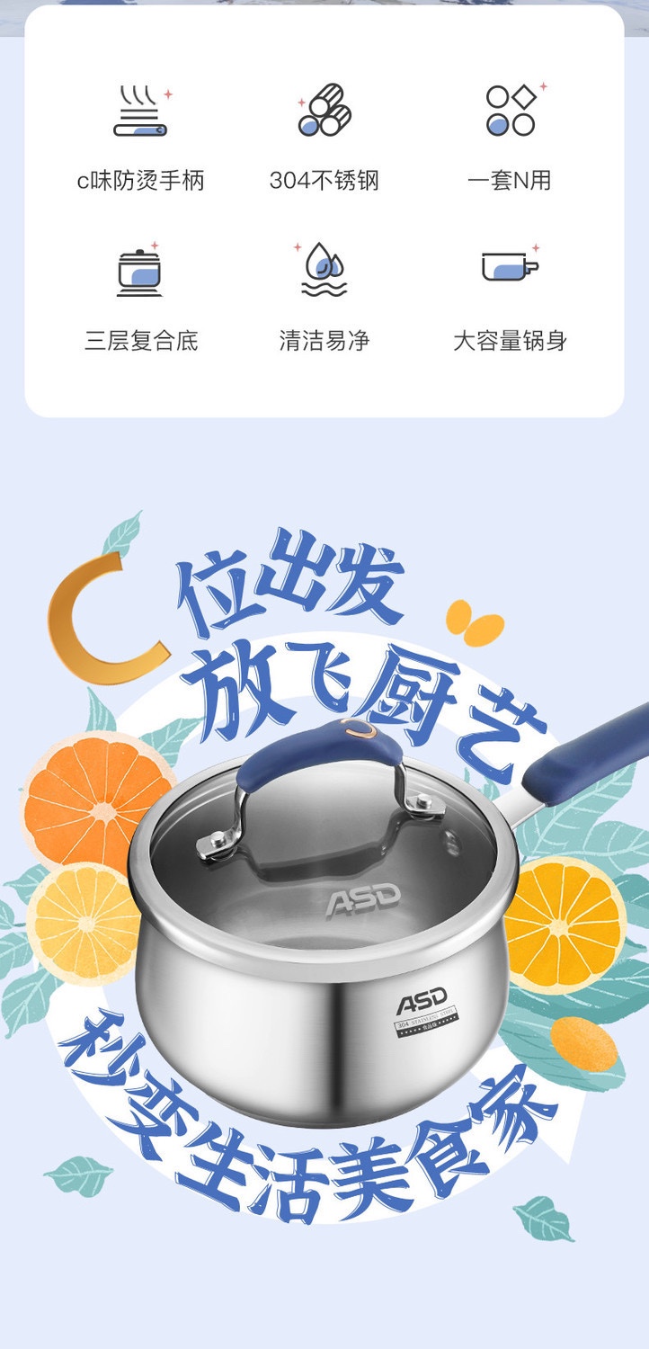 ASD/爱仕达.黛丽舍系列 18CM不锈钢304奶锅辅食锅GL1918B