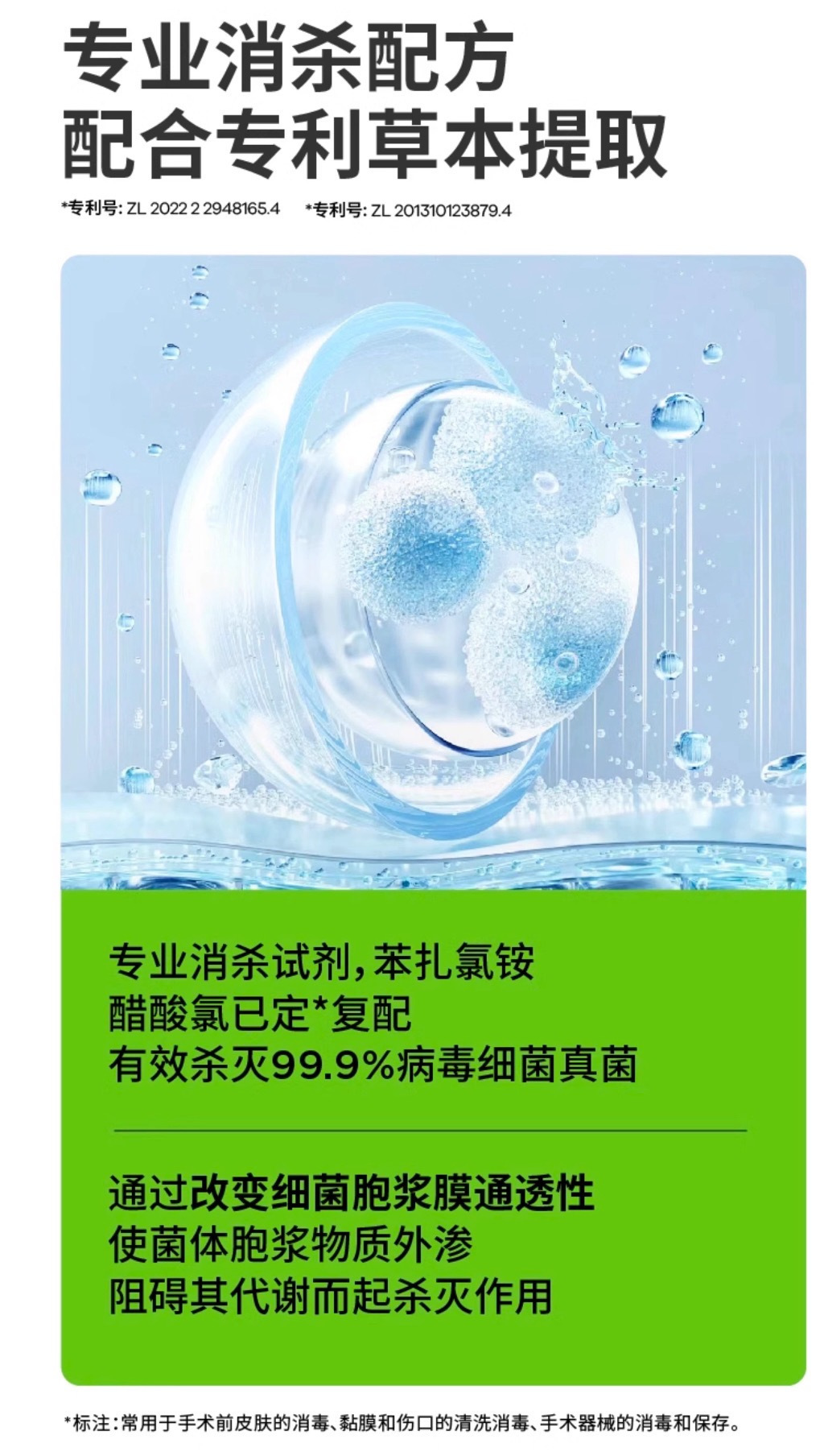 苯扎氯胺+醋酸氯己定核心杀菌消毒成分