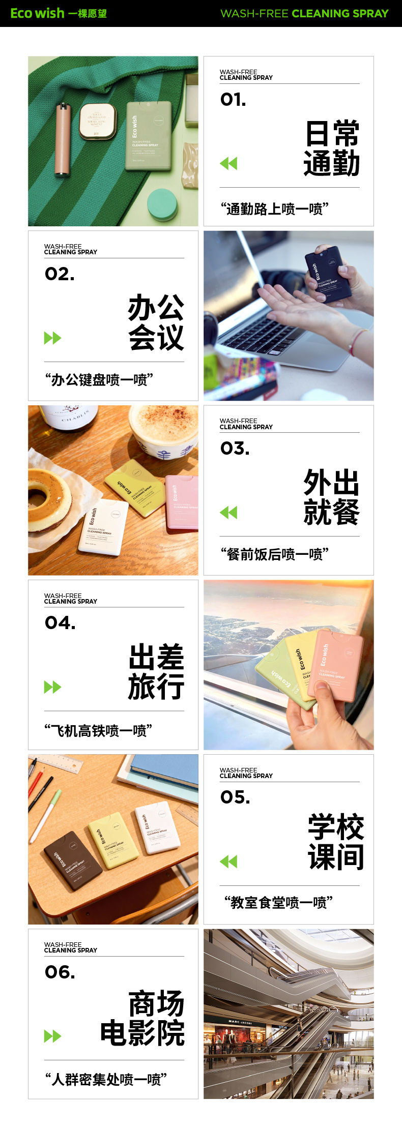 免洗手喷雾和消毒湿巾可以适用不同的场合/情景