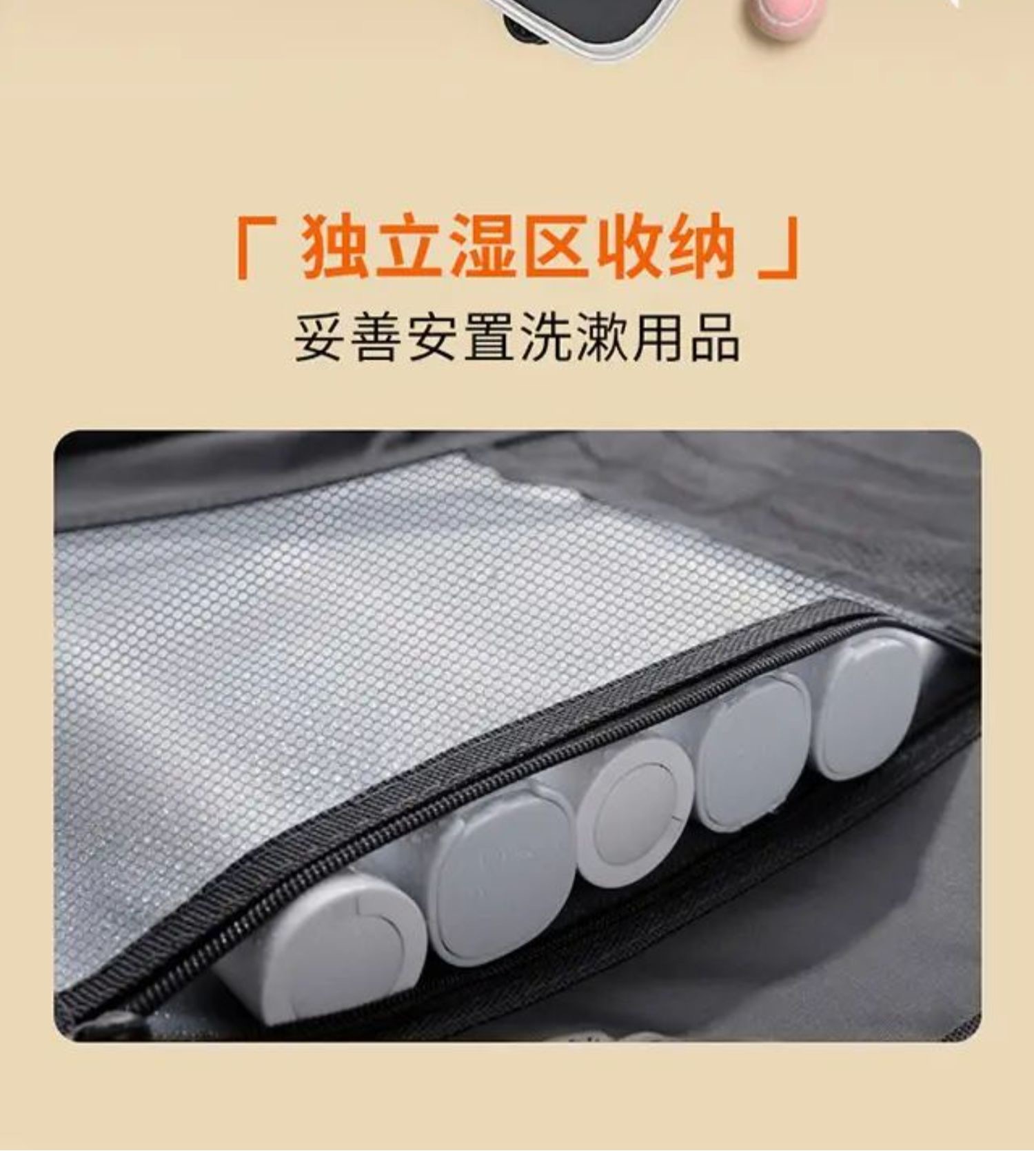 这款的收纳力可不是盖的,网布收纳袋、独立拉链吊袋、X型固定织带等。