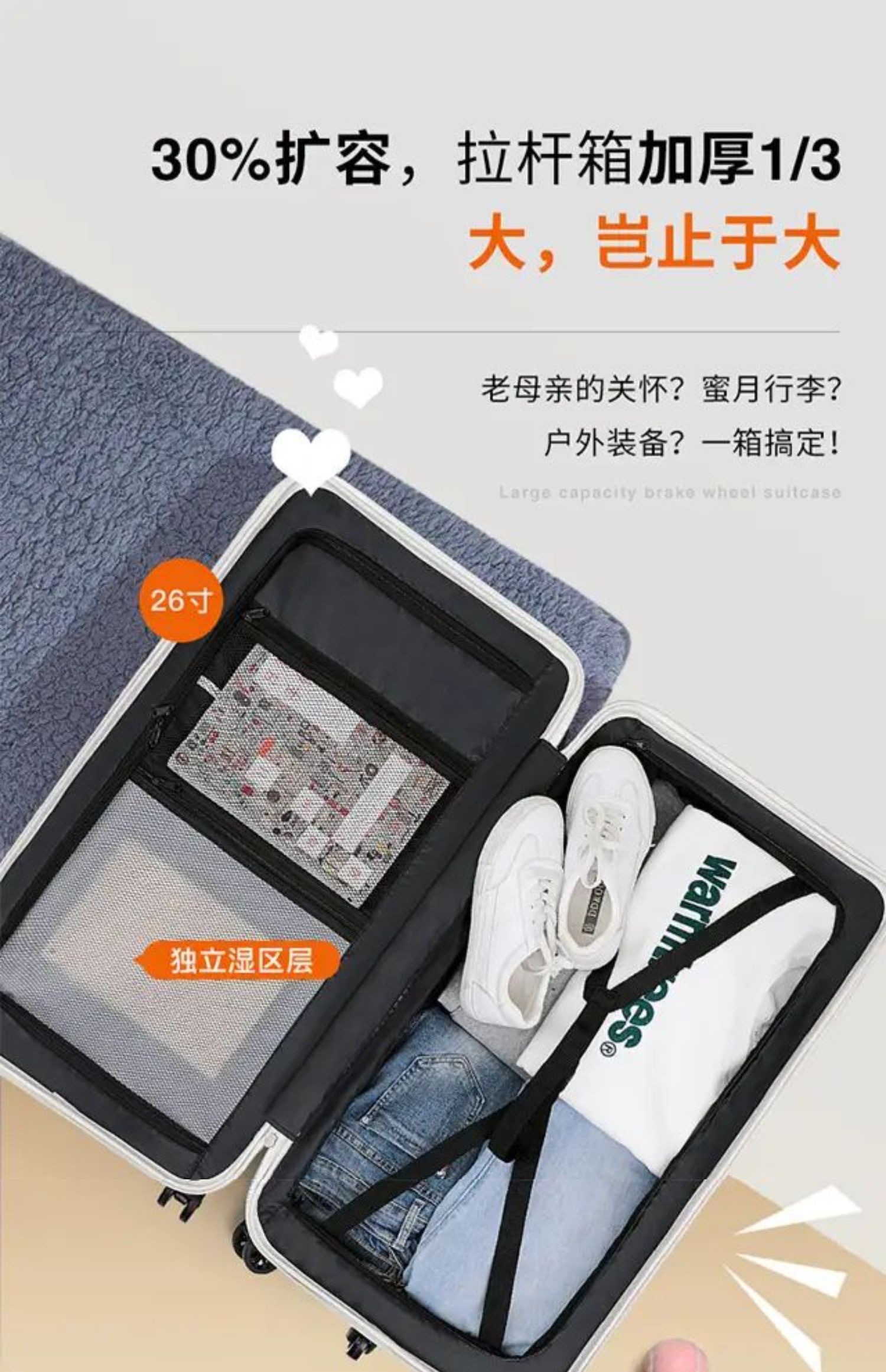 跟我们看懂到的常规行李箱🧳不一样,容量比常规的行李箱🧳多30%!