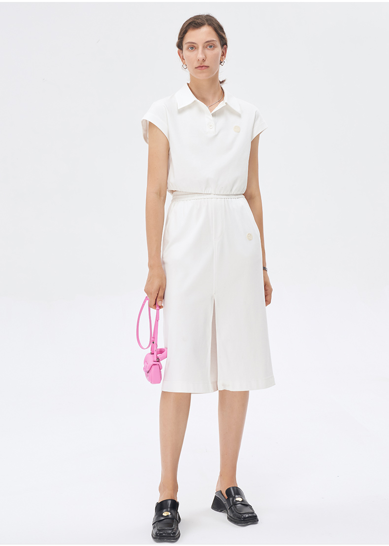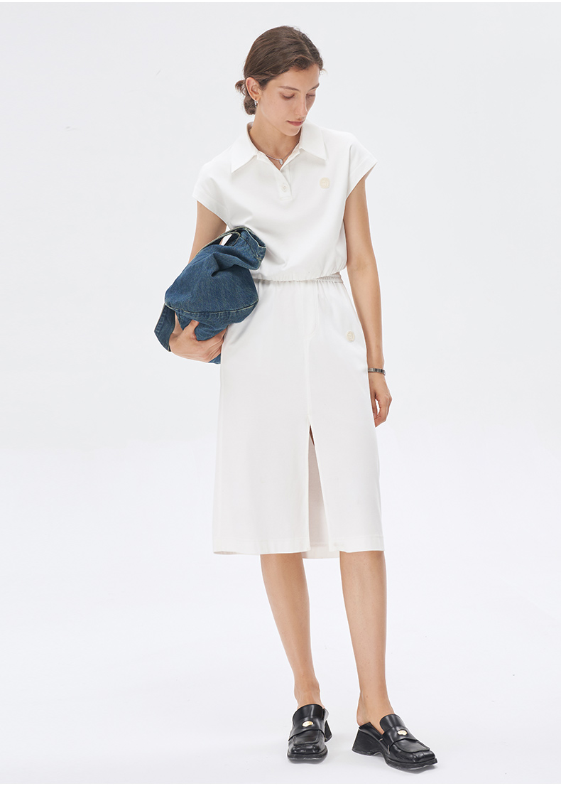 Self Who丝光工艺白色针织半身裙2023新款夏季高腰显瘦开叉裙子女